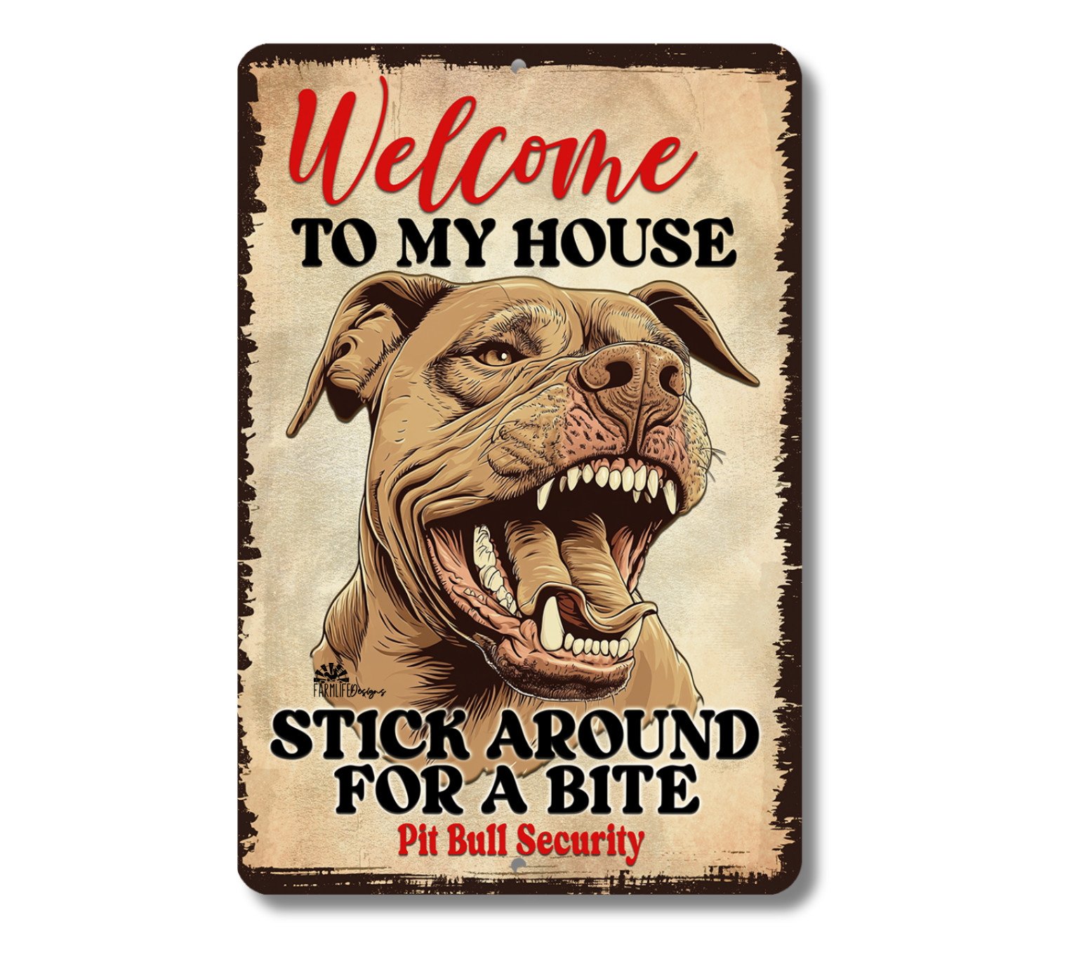 Pit Bull Welcome Yard House Sign funny dog metal warning security