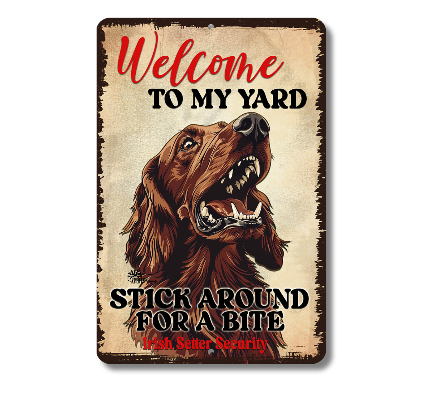 Irish Setter Welcome to Yard House Sign funny red dog security metal warning tin