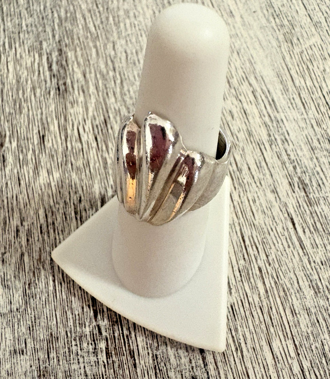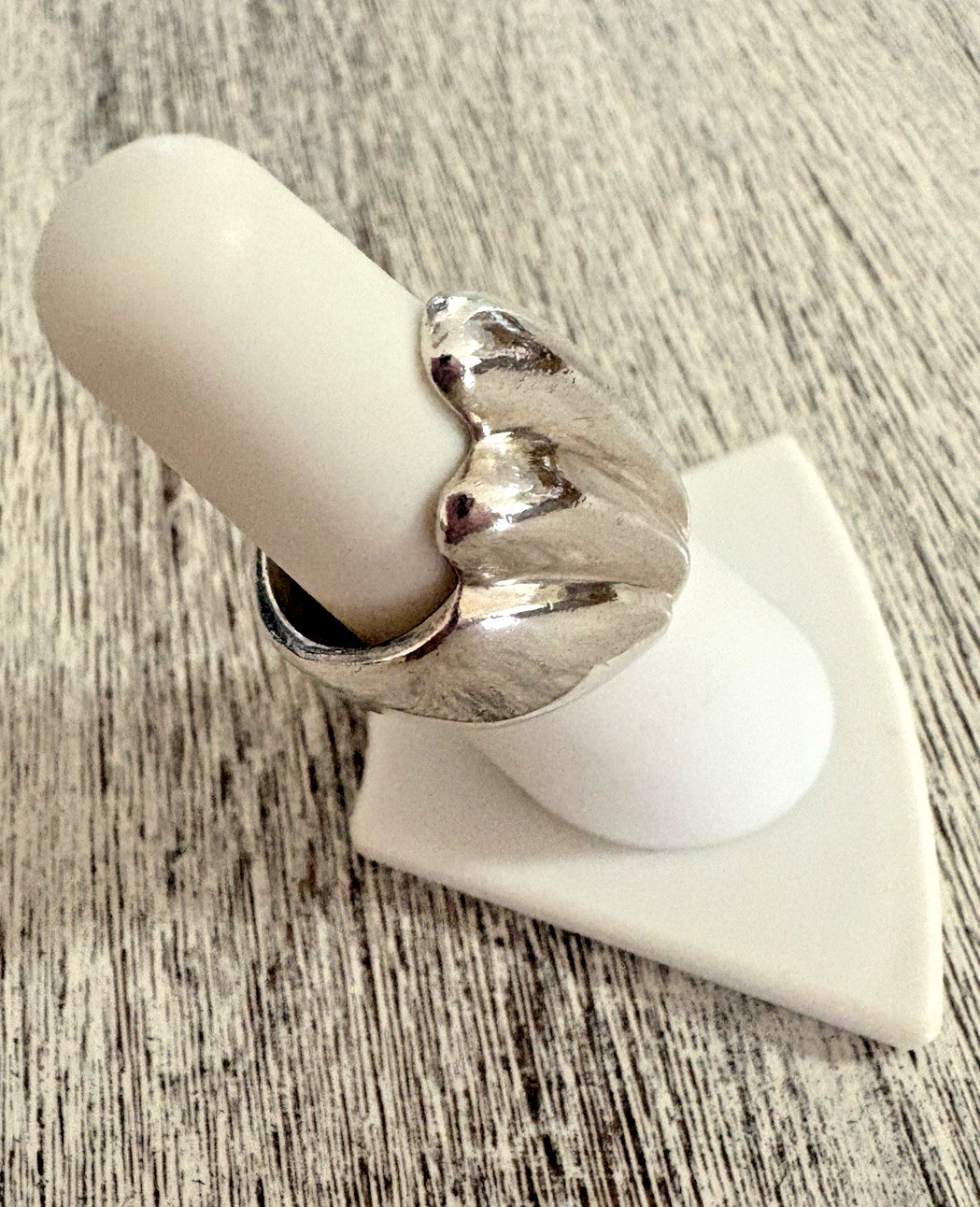 как выглядит Vintage 80s Large Stunning Chunky Wave Ring 925 Sterling Silver SZ 6 фото