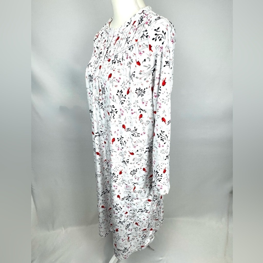 как выглядит Aria Collection Nightgown Soft Velour Red Cardinals Long Sleeves Pockets Small фото