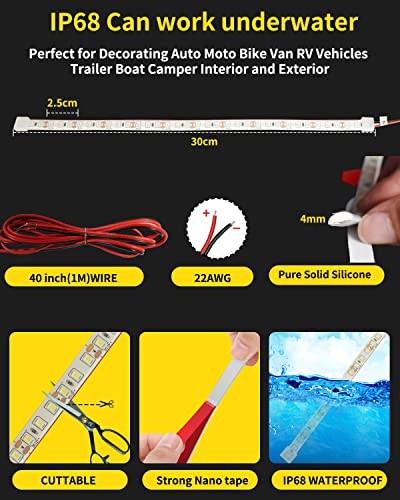 Led Strip Lights for Cars, 30CM Waterproof Car Underglow Lights 12 inch Blue