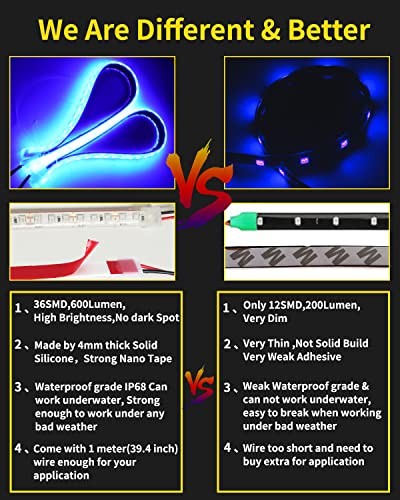 Special Feature: 4mm thick Pure Solid Silicone, 600 Lumen, Strong Nano Tape, IP68