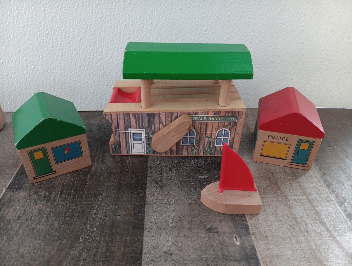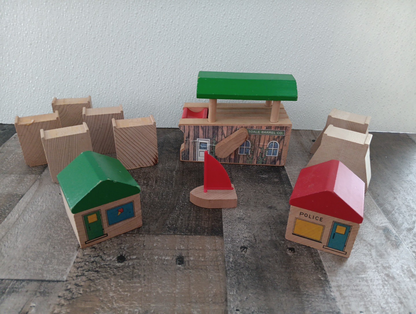 как выглядит VTG BRIO WOODEN RAIL TRAIN TRACK SUPPORTS RISERS BUILDINGS LOT OF 11 PIECES фото