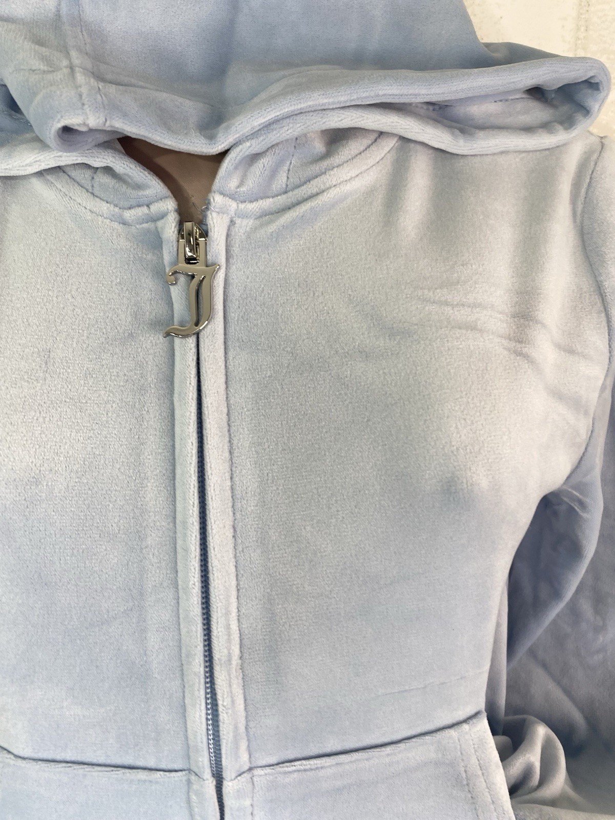 как выглядит Nwt Juicy Couture Velour Hoodie Flare Pants Tracksuit Set Bling Light Blue XL фото