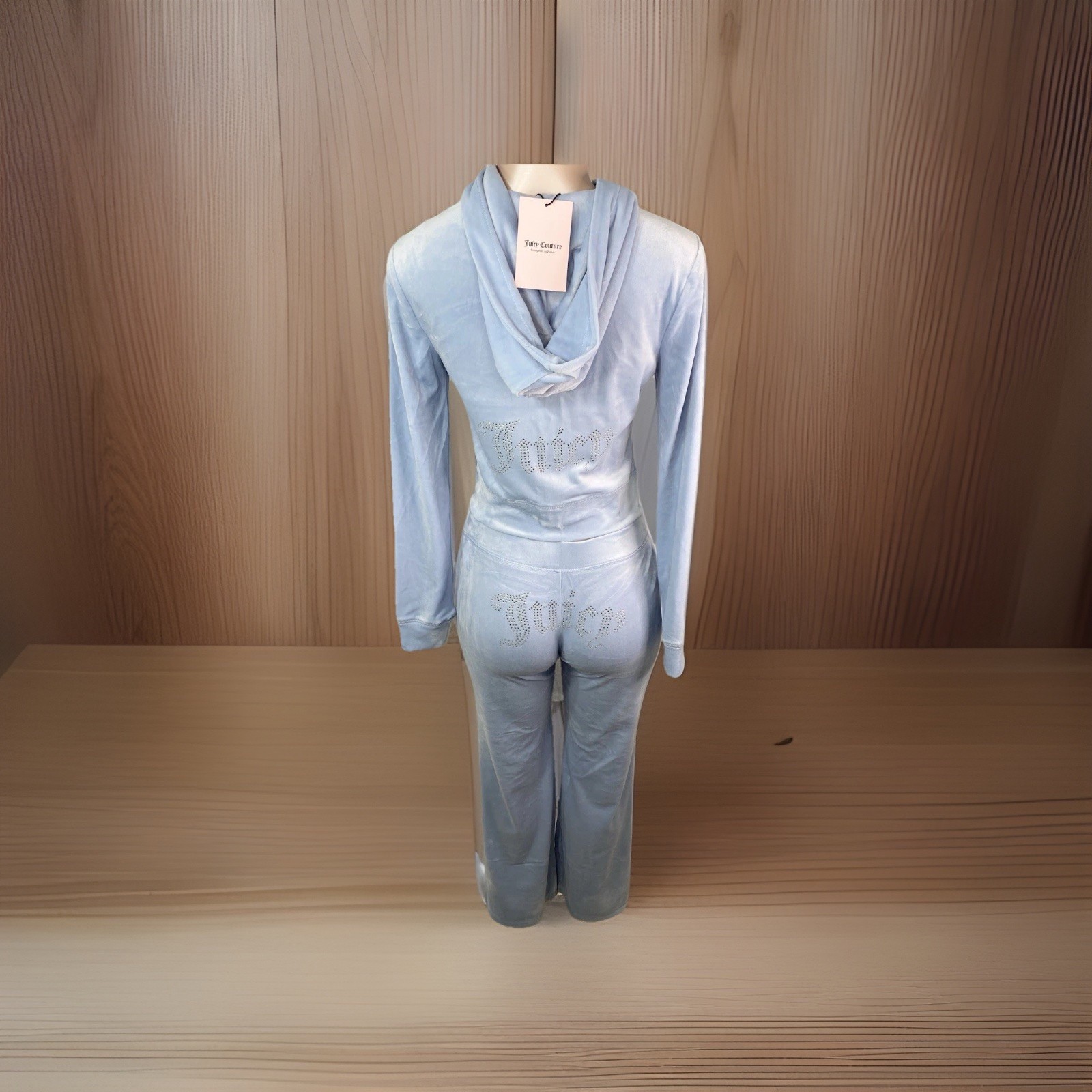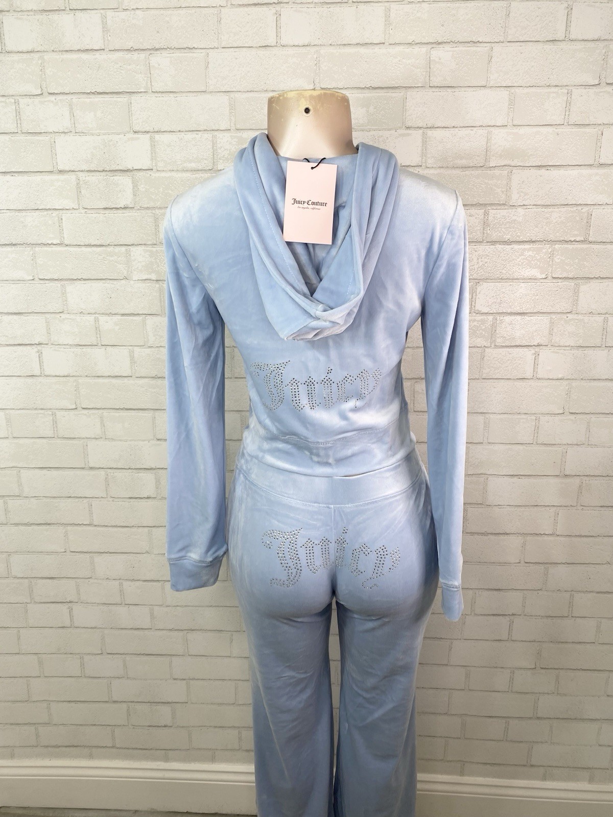 Nwt Juicy Couture Velour Hoodie Flare Pants Tracksuit Set Bling Light Blue XL