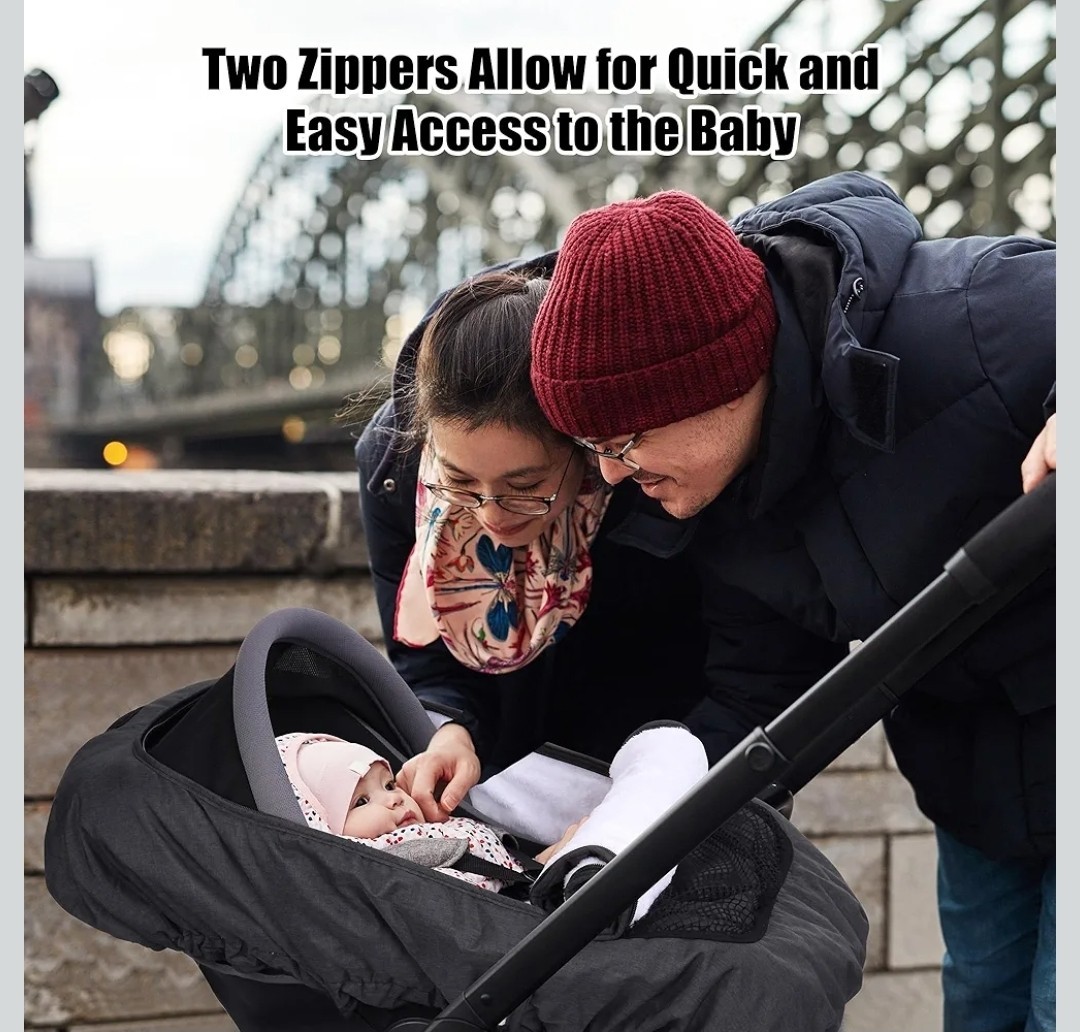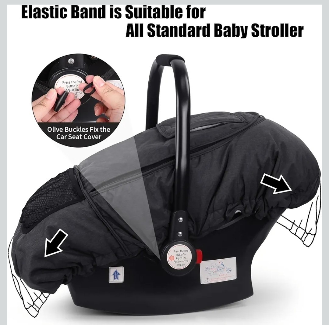 Black Water Resistant, Fleece lined Infant/baby Carseat Cover for Winter