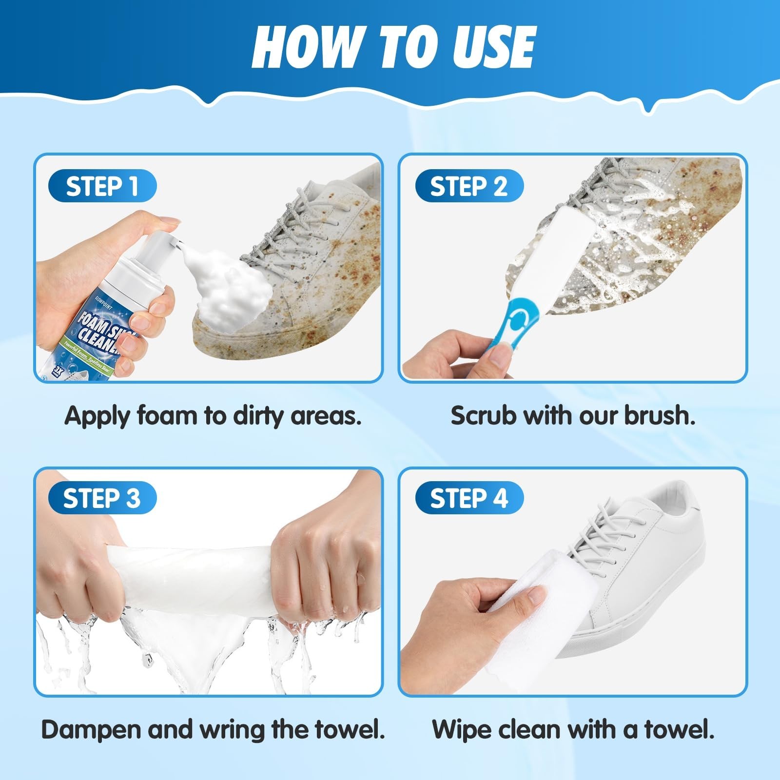 Shoe Cleaner, 6.76 Oz White Shoe Cleaning Kit with Brush Towel, Sneaker Cle...