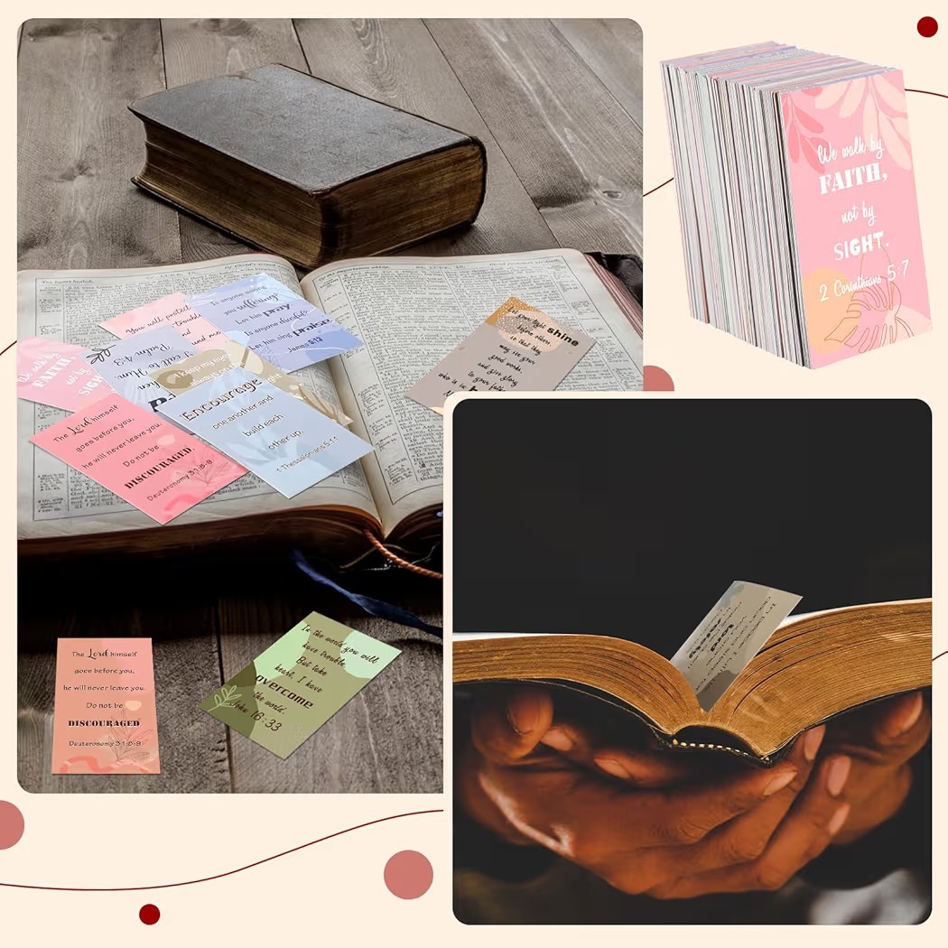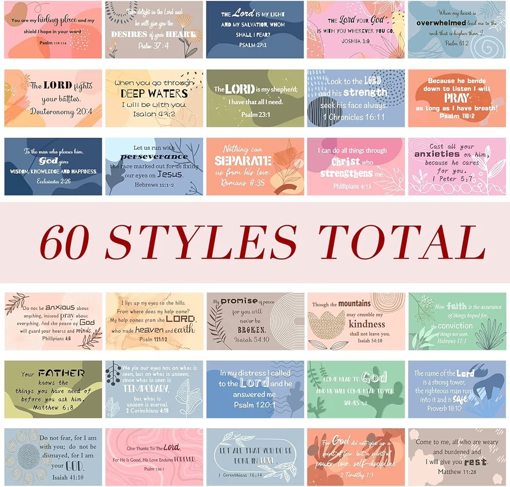 • 4 Bible Verse Mini Scripture Inspirational Christian Gifts Encouragement Cards.