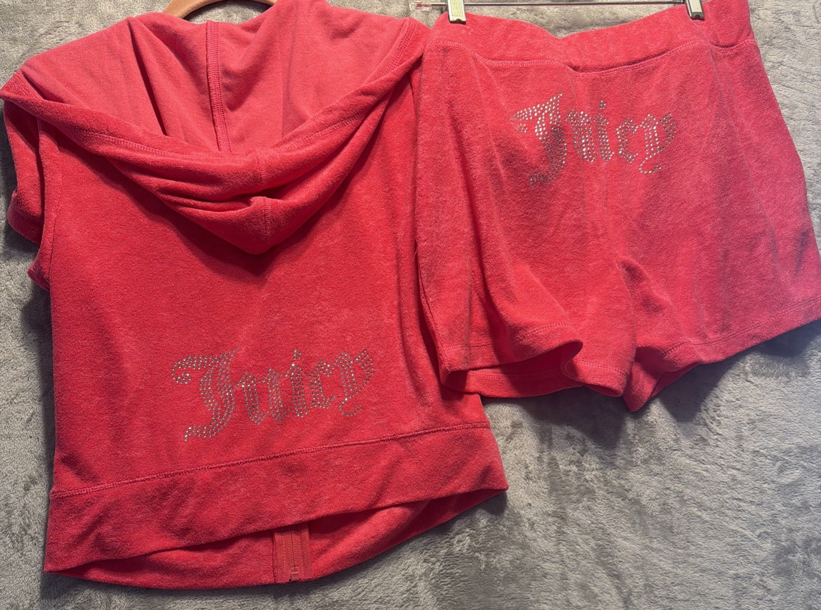 NEW Juicy Couture Terry Cloth Tracksuit XL Watermelon Hoodie Shorts Bling Y2K