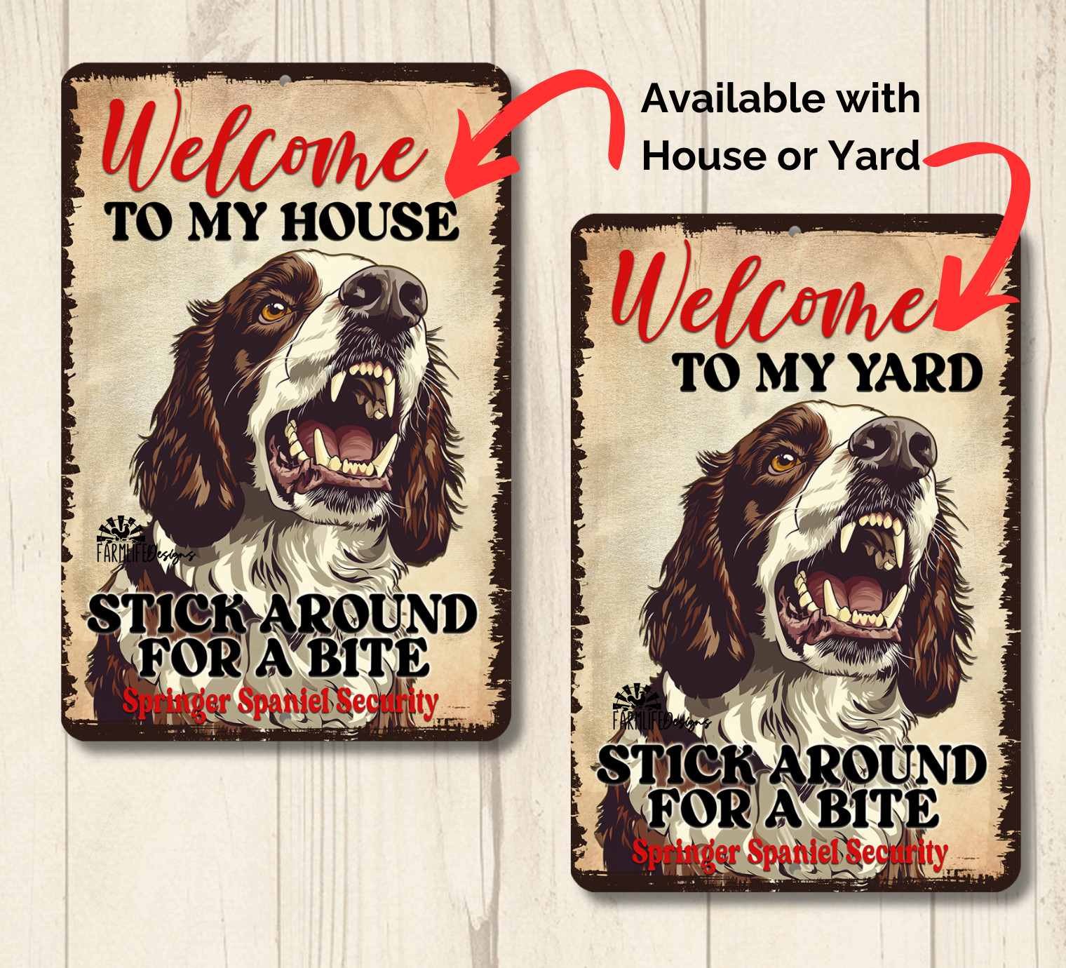 Springer Spaniel Welcome Yard House Sign funny warning security dog metal