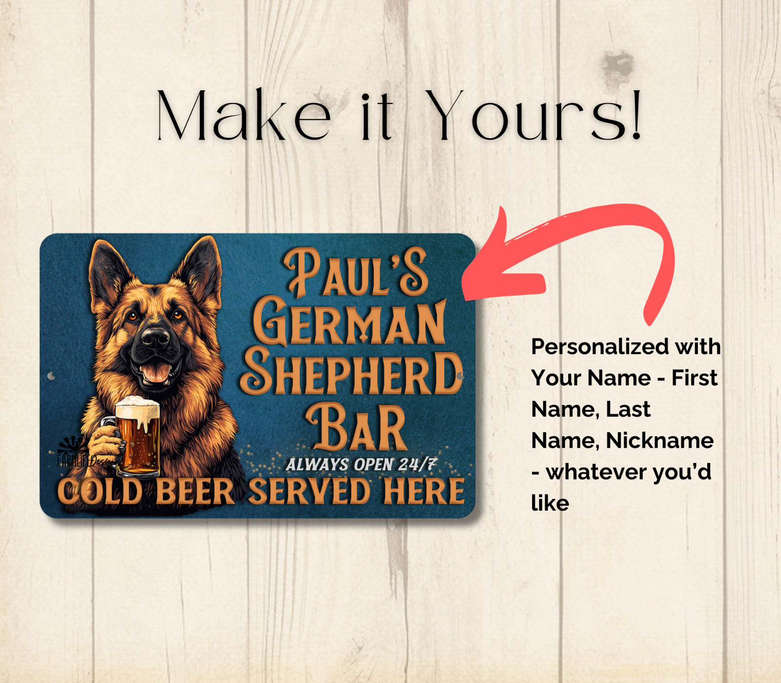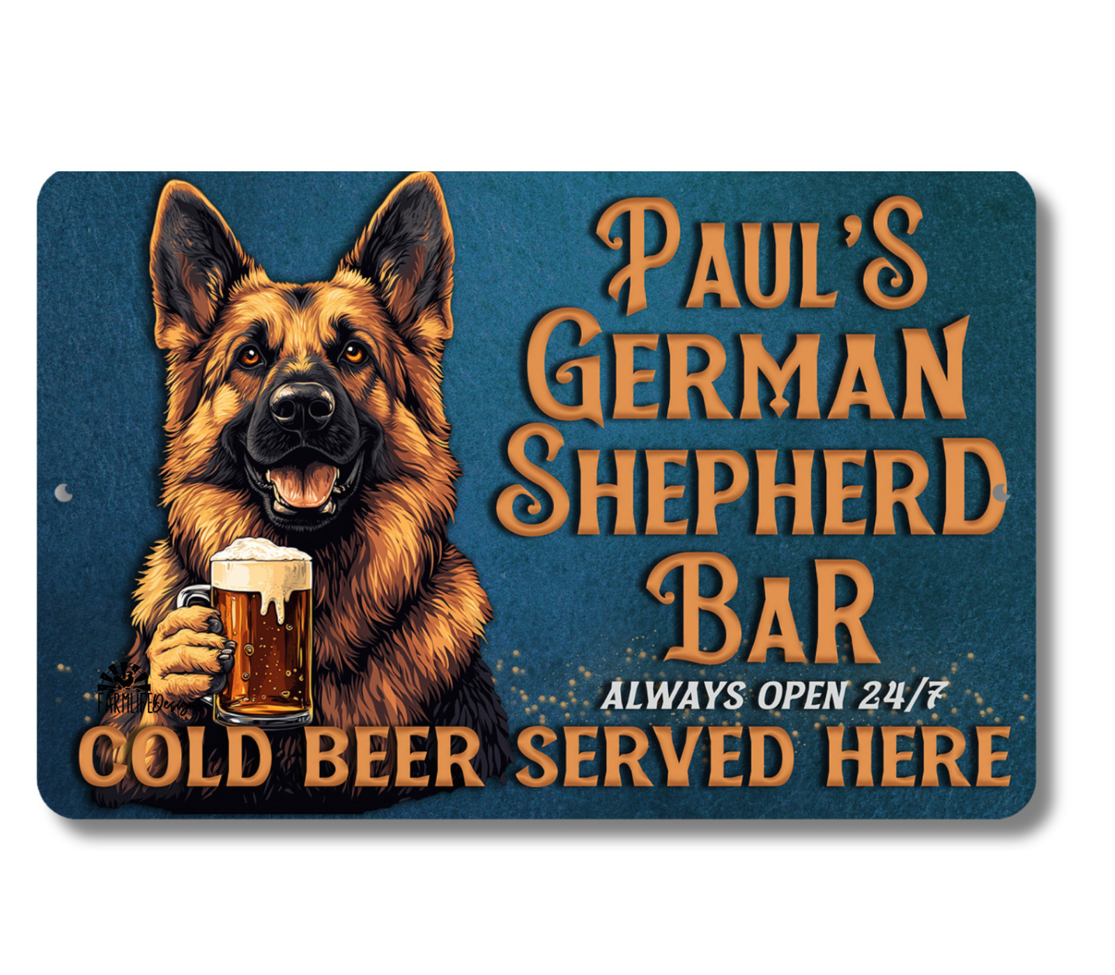 German Shepherd Custom Sign Personalized Bar GSD Man Cave dog metal tin wall art