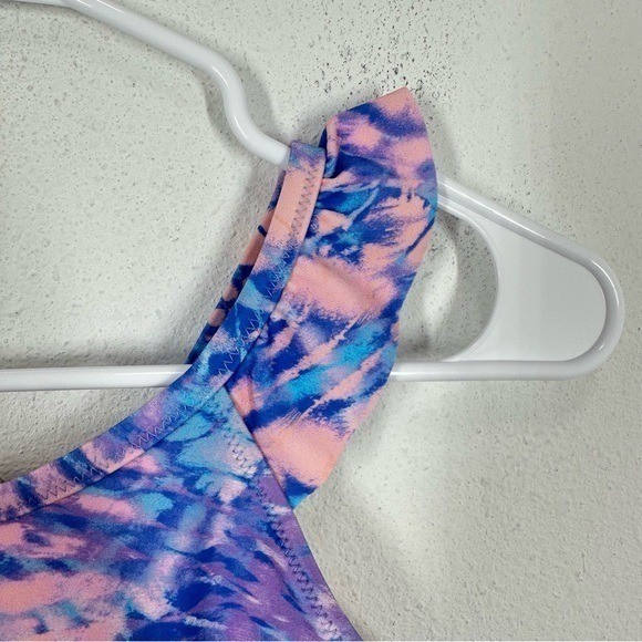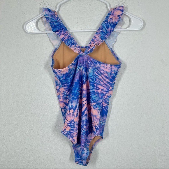как выглядит J. Crew Crewcuts Girls tie-dye ruffle-strap one-piece swimsuit Blue Pink UPF фото
