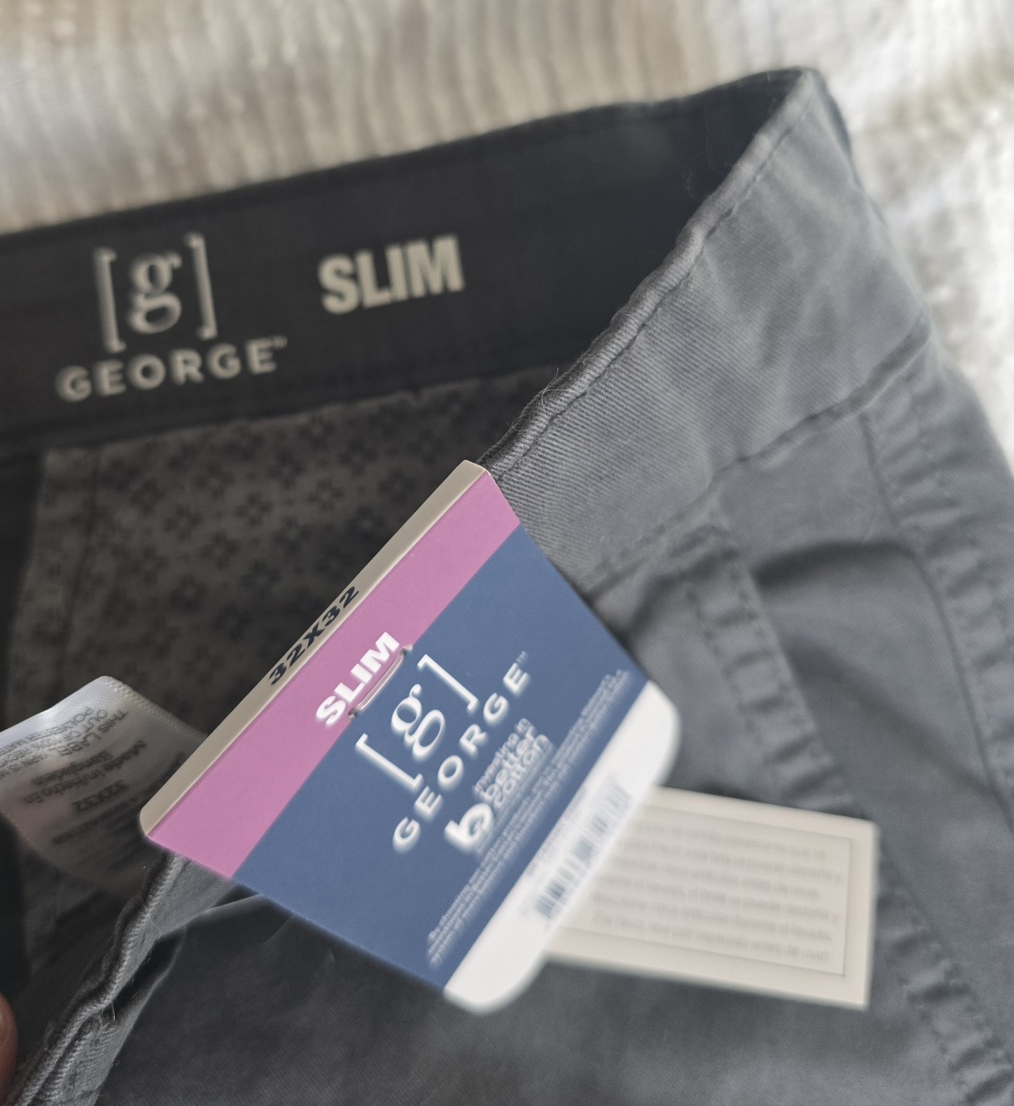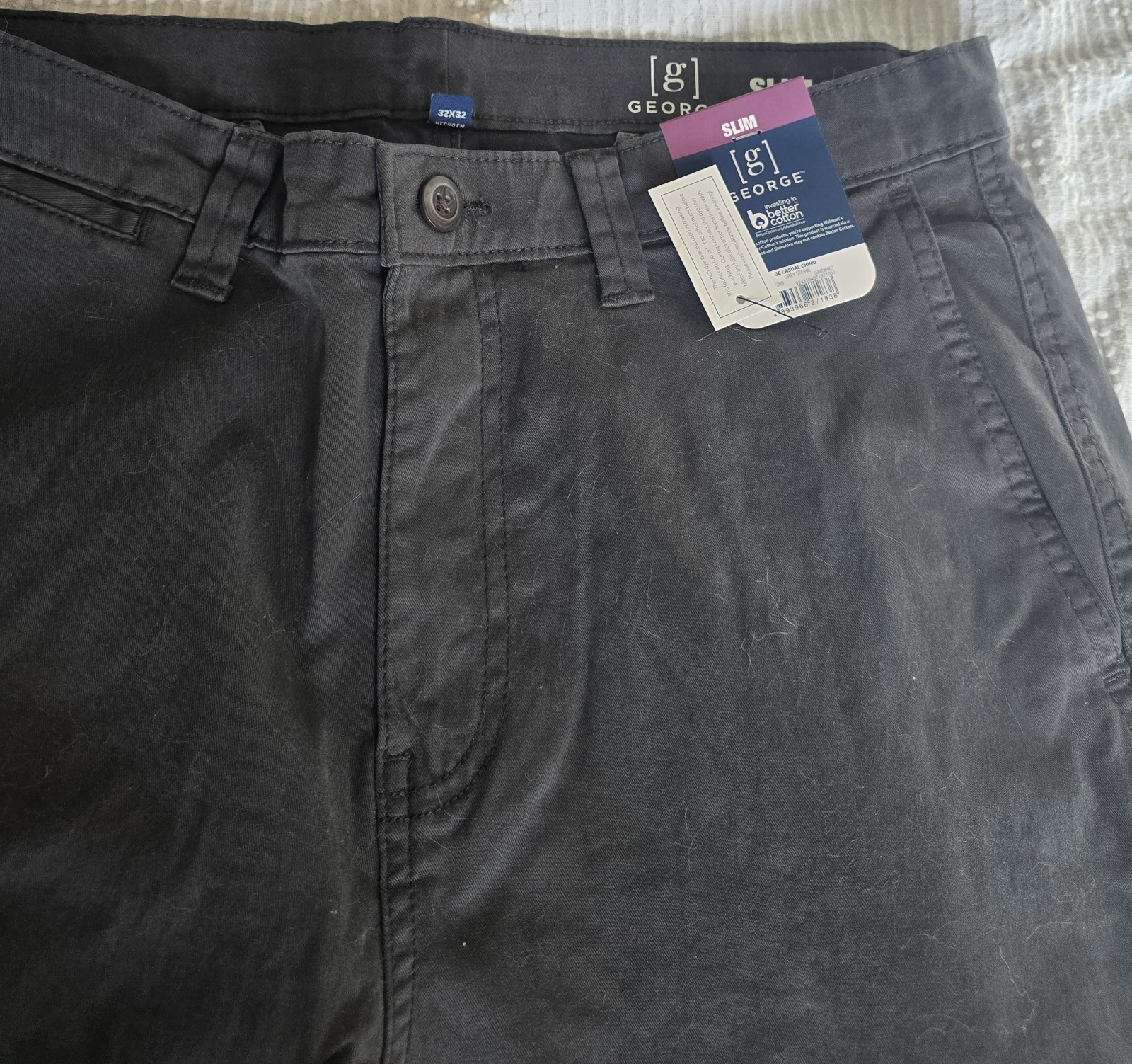 как выглядит George Slim Fit Black Mens Casual Pants Cotton Twill Button Zip Closure фото