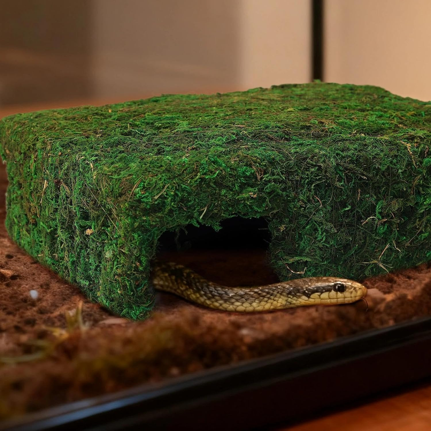 Mossy Cave Hide for Reptiles Lizard Moss Hideout with Safe Shelter Snake Cave