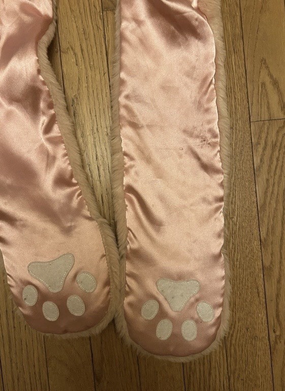 Little Girls Furry Pink Hat With Attached Paw Print Hand Warmers