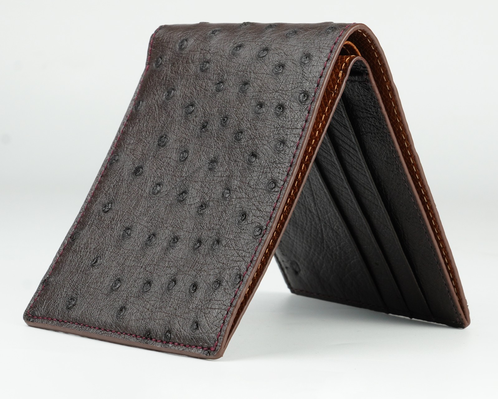 как выглядит Brown Ostrich Leather Bifold Wallet Men
