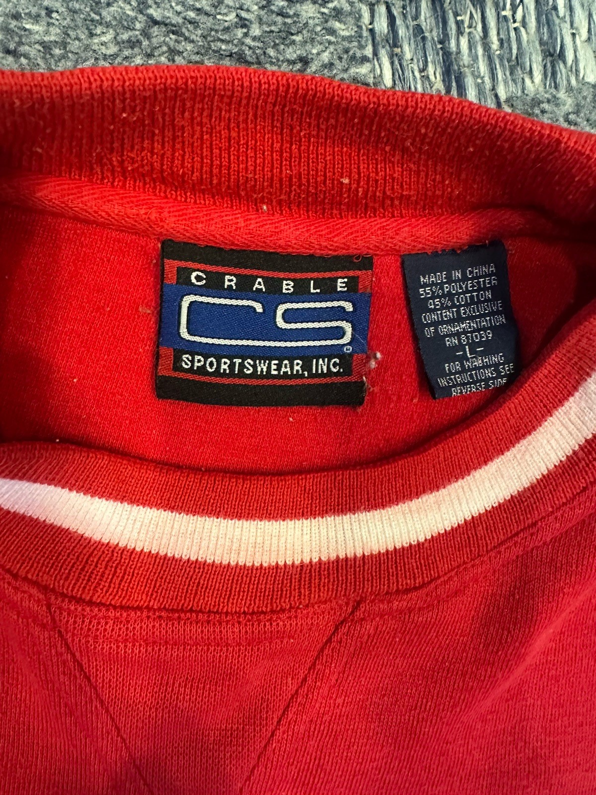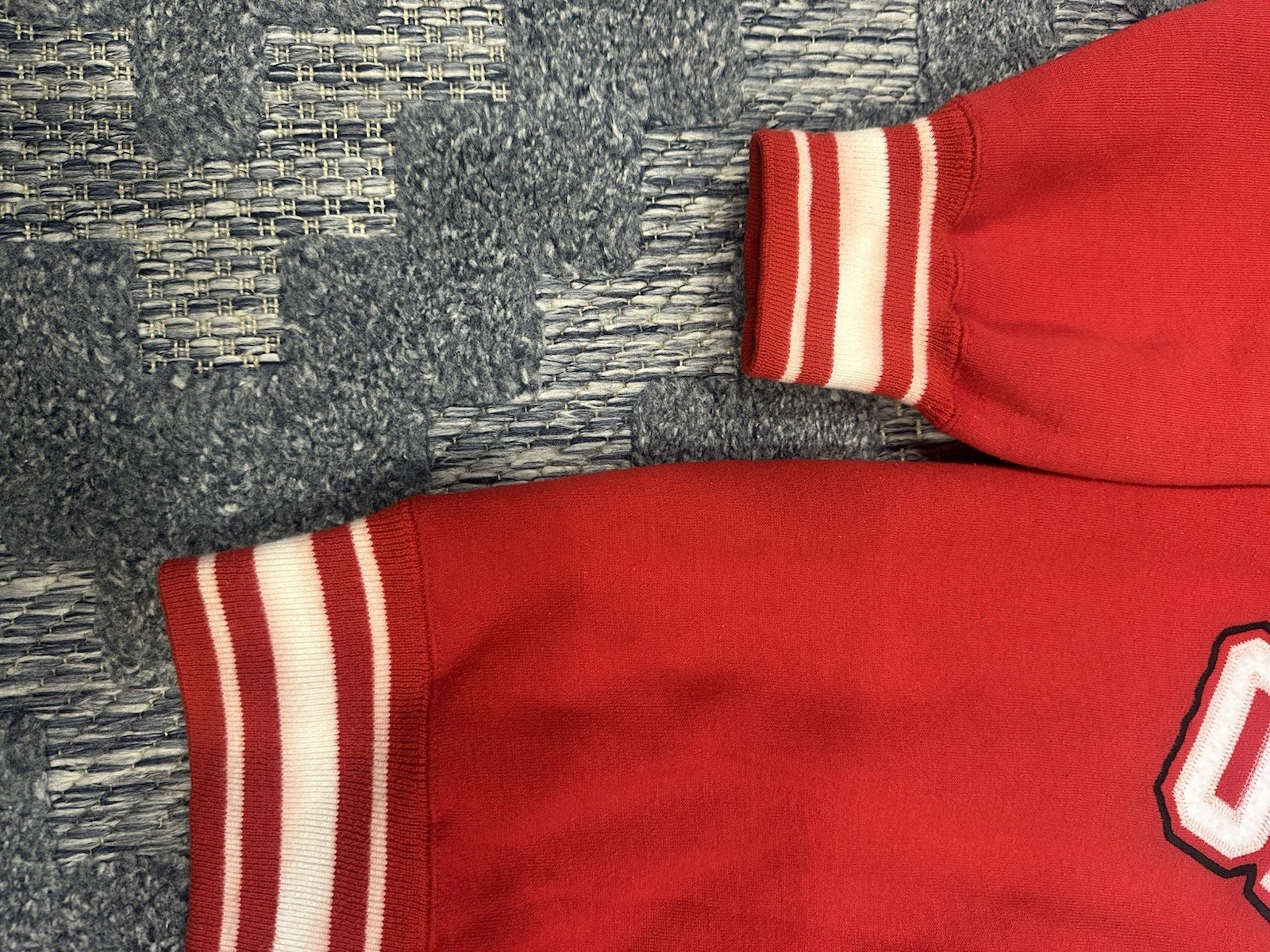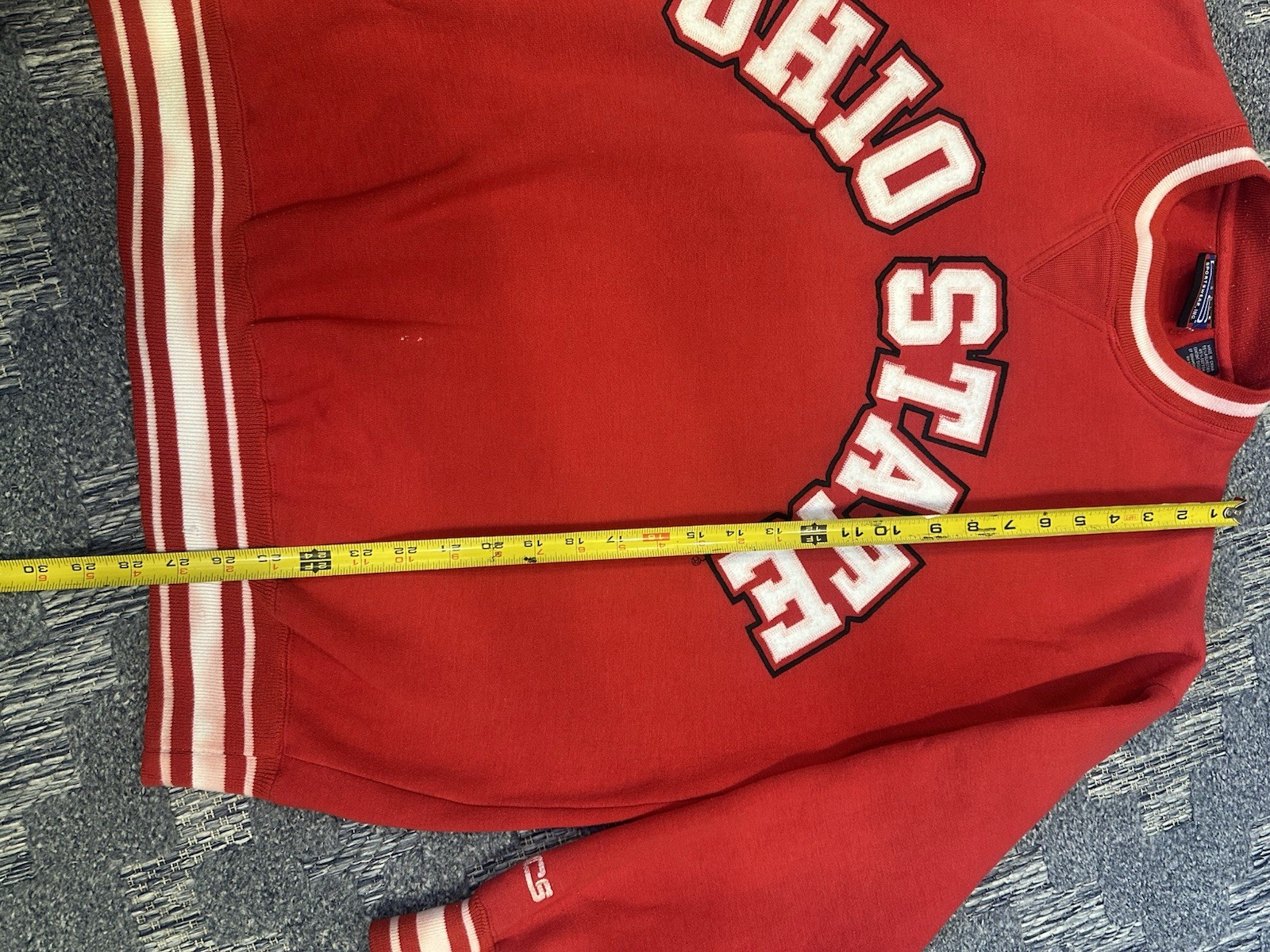 как выглядит Ohio State Buckeyes Crewneck Mens Large Vintage Red Sweatshirt OSU Spellout Flaw фото