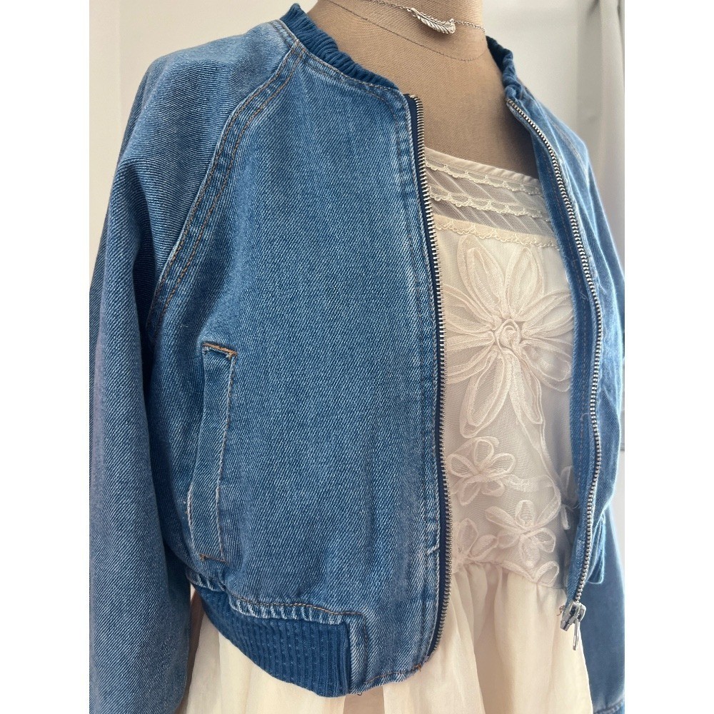 как выглядит vintage cropped jean jacket Y2K 90s pure cotton pockets heavy zipper soft LG фото