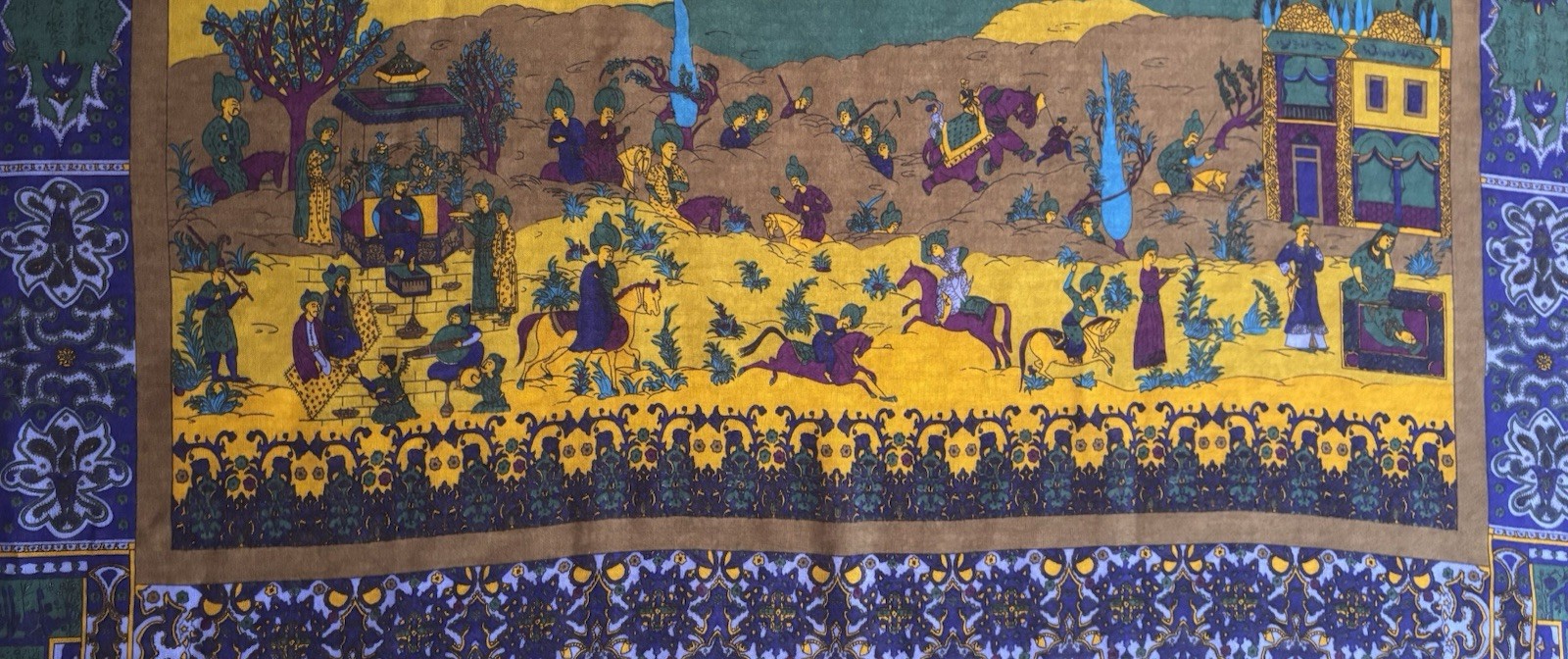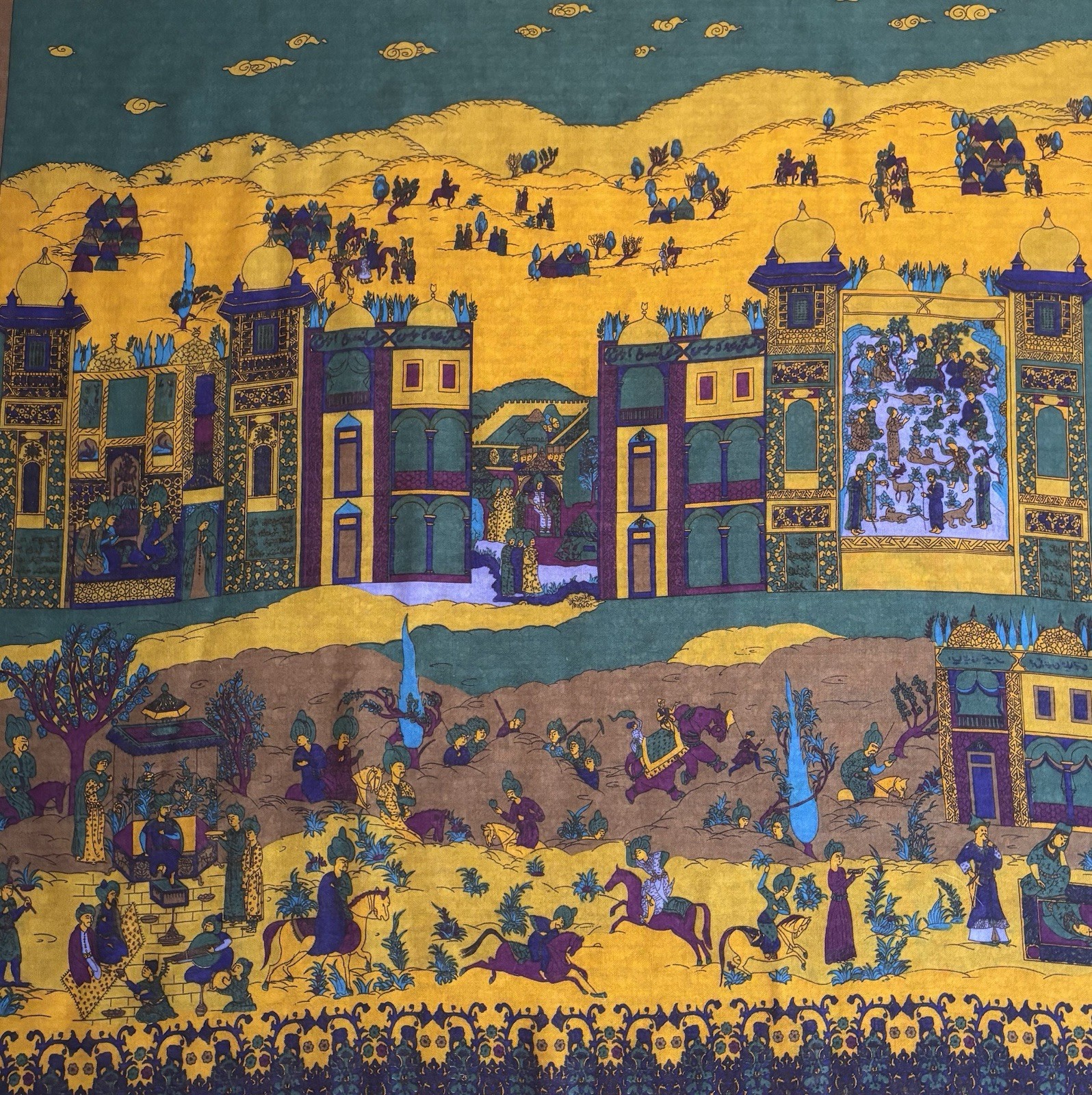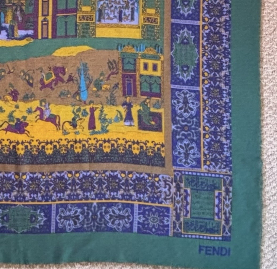 Vintage NWOT rare Fendi Oversized Wool Scarf Ancient Asian Landscape Theme