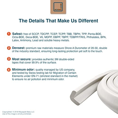 Roving Cove HeftyFit Edge Protector for Baby Proofing 12ft Large Edge Only , He