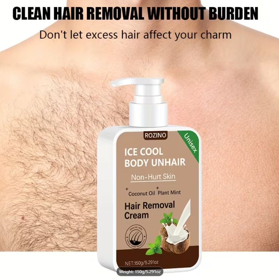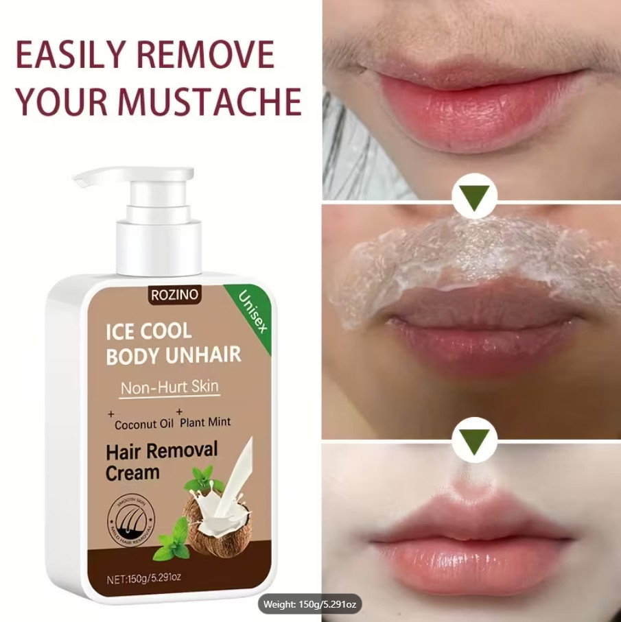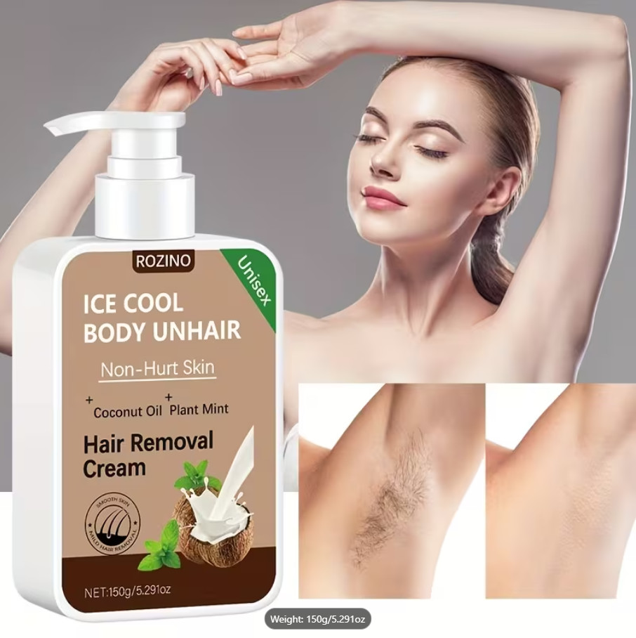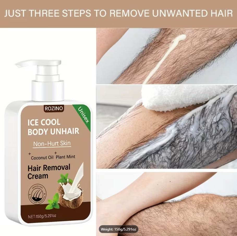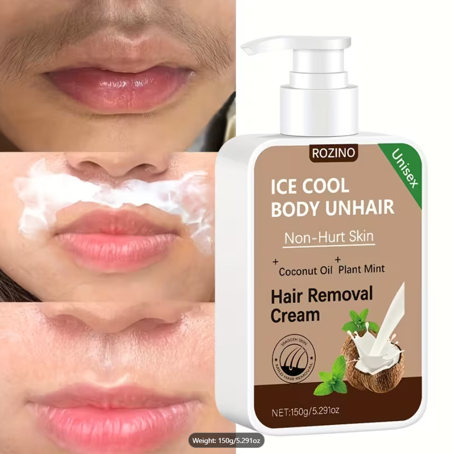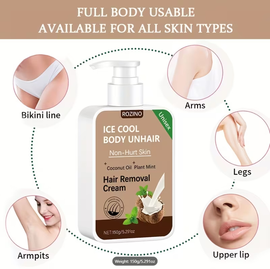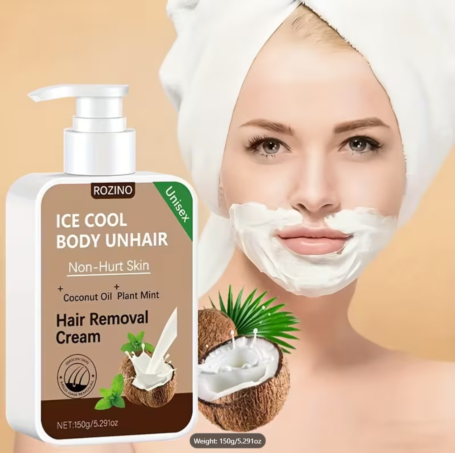 ROZINO IceCool SmoothTouch Hair Removal Cream Painless, Mint Coconut Formula
