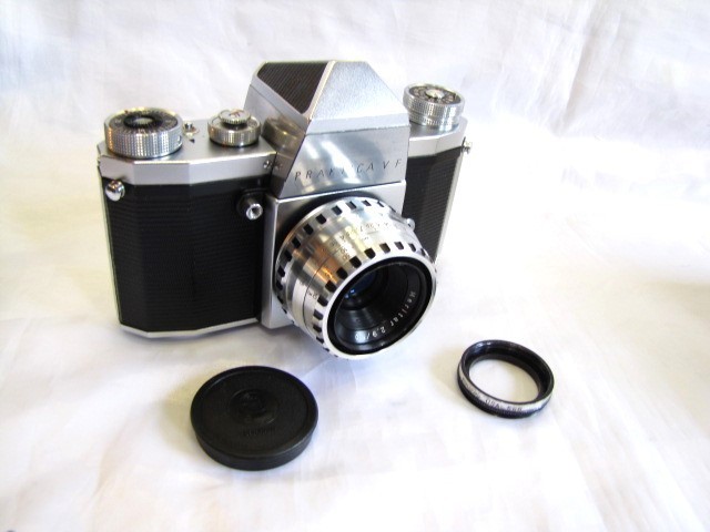 Praktica V F 35mm M42 SLR Camera w/E. Ludwig Meritar 50mm Lens, Case, Tested