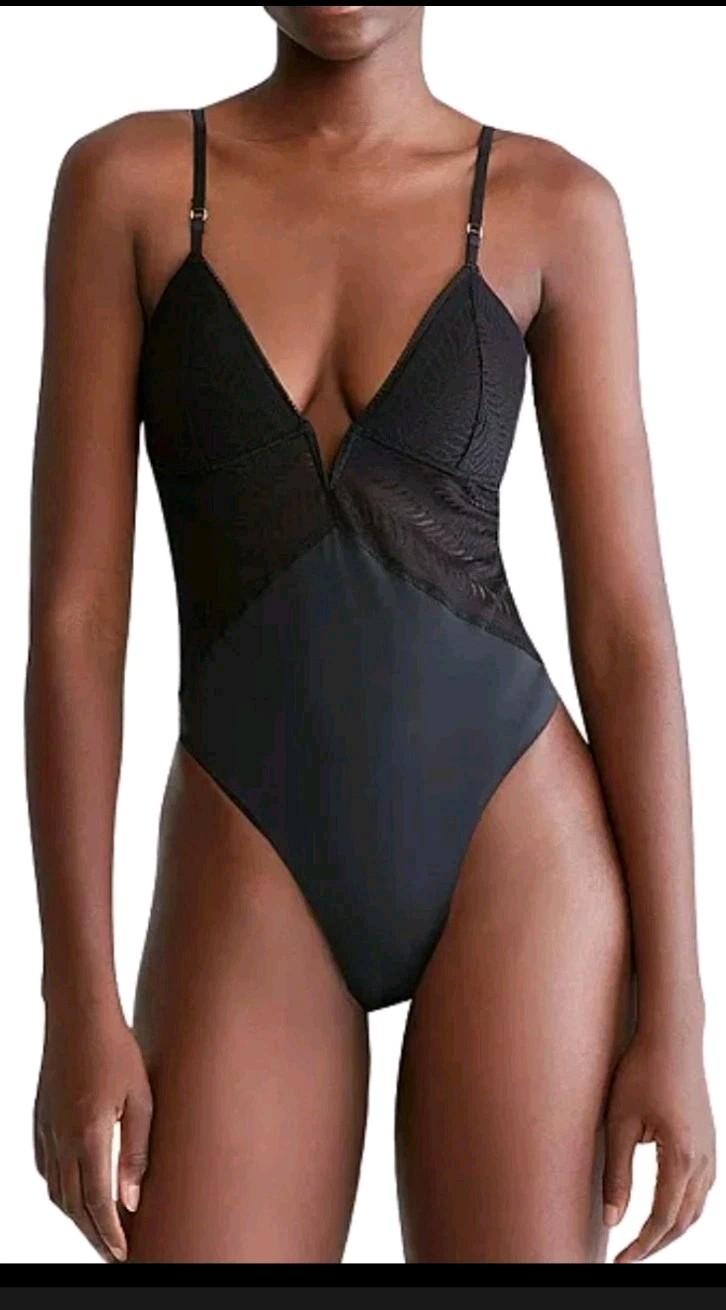как выглядит Calvin Klein Sculpt Lace Solid Color Womens Thong Bodysuit SZ M фото