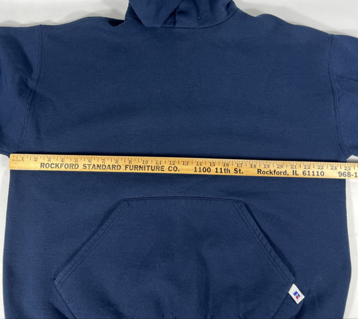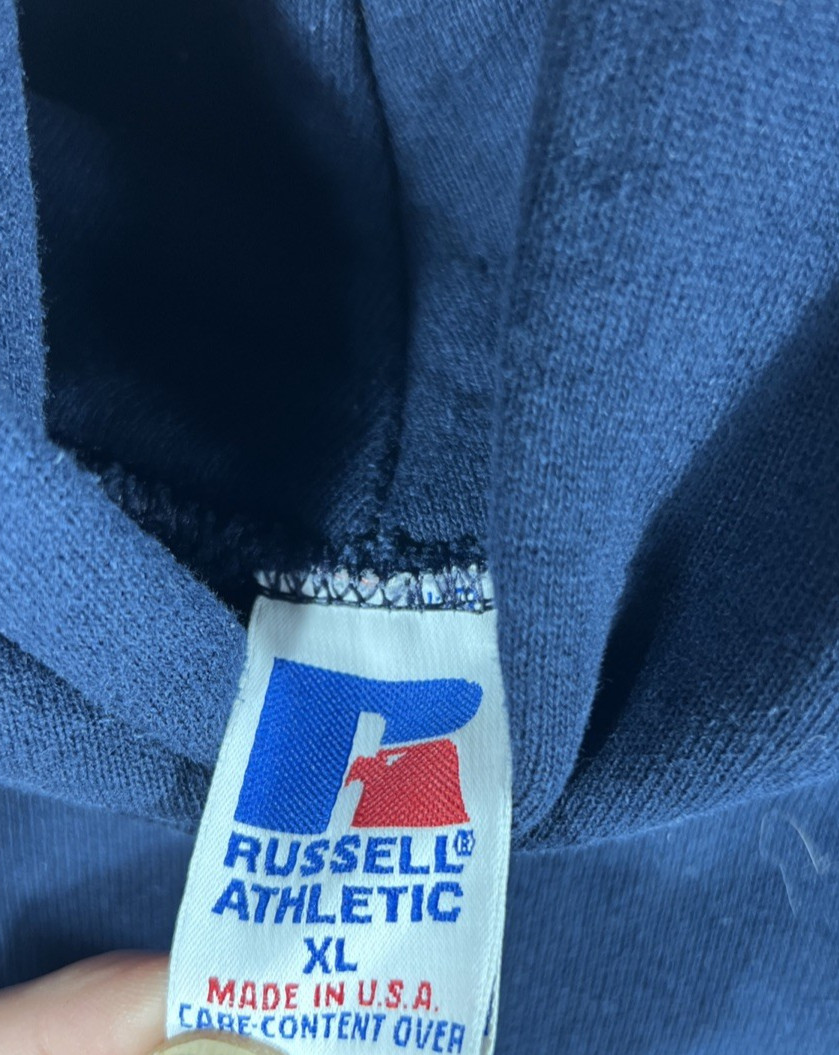 как выглядит Vintage 90s Russell Athletic Blank Hoodie Sweatshirt XL USA Navy Blue Pullover фото