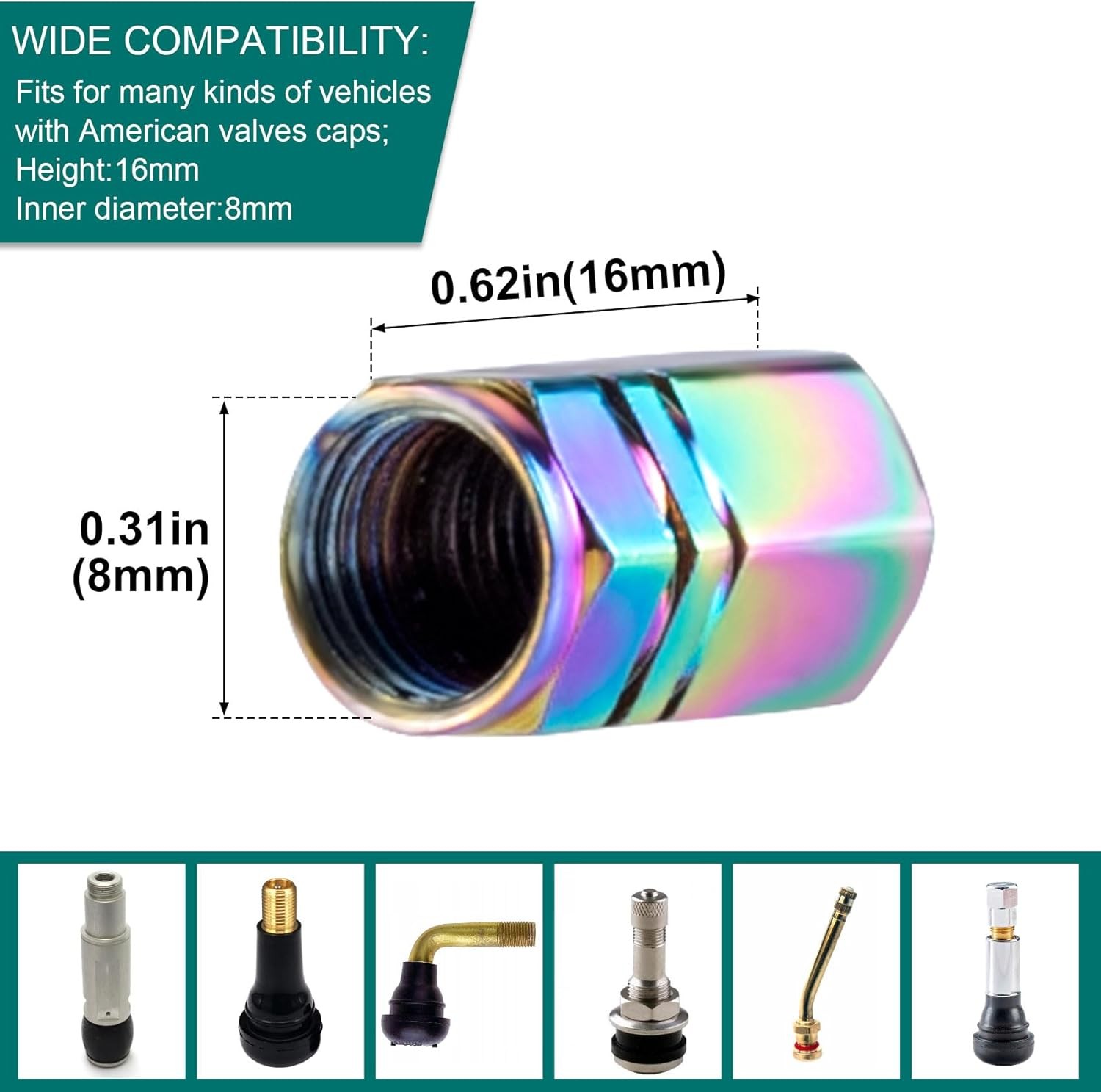 • 4PCS Colorful Car Tire Valve Stem Caps, Aluminum Alloy Universal Tire Valve Caps