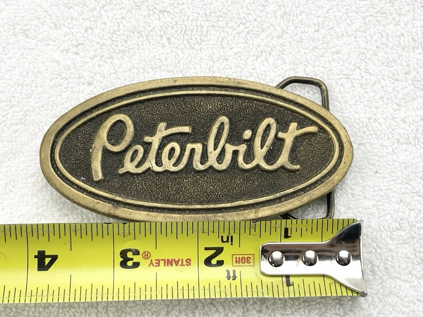 как выглядит Vintage 4 1976 Brass Peterbilt Semi Oval Belt Buckle Good Condition фото