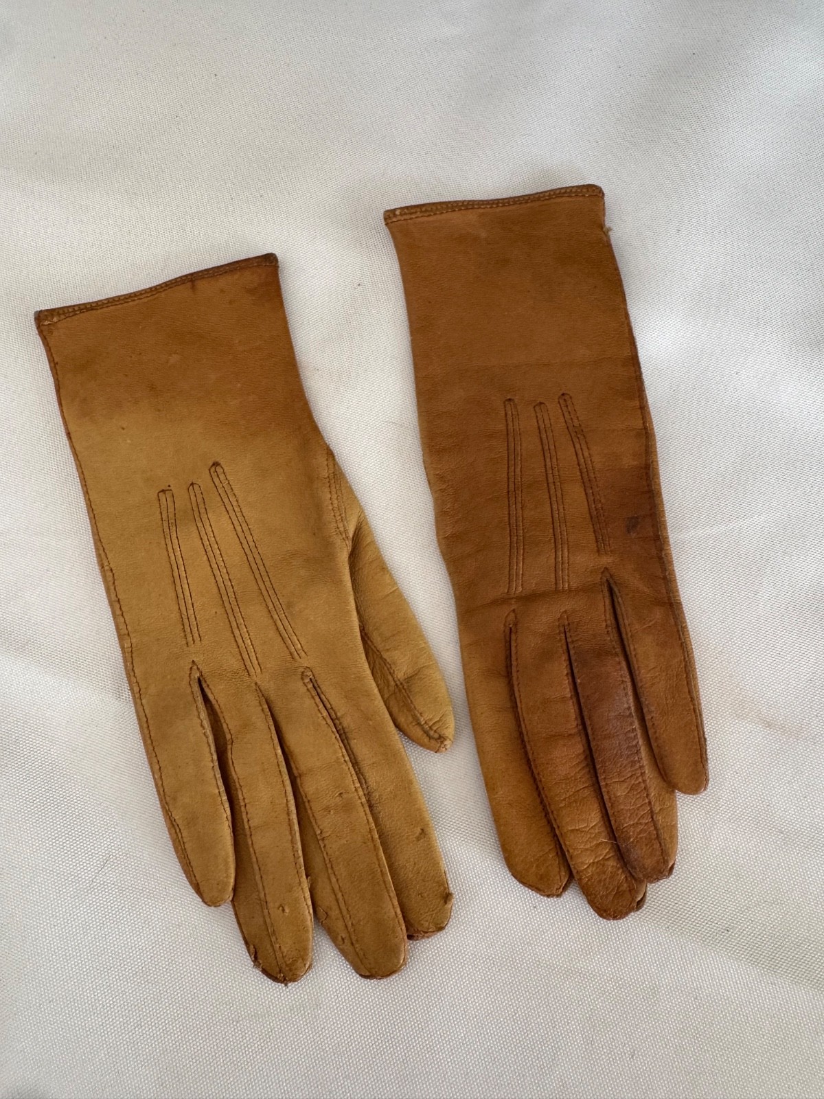 как выглядит Vintage 1950 s Children s Brown Leather Gloves Marked 4/3 Mid Century фото
