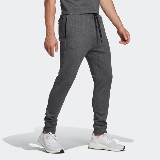 как выглядит NWT Adidas Mens Essentials Fleece Regular Tapered Pants - Dark Grey Heather фото