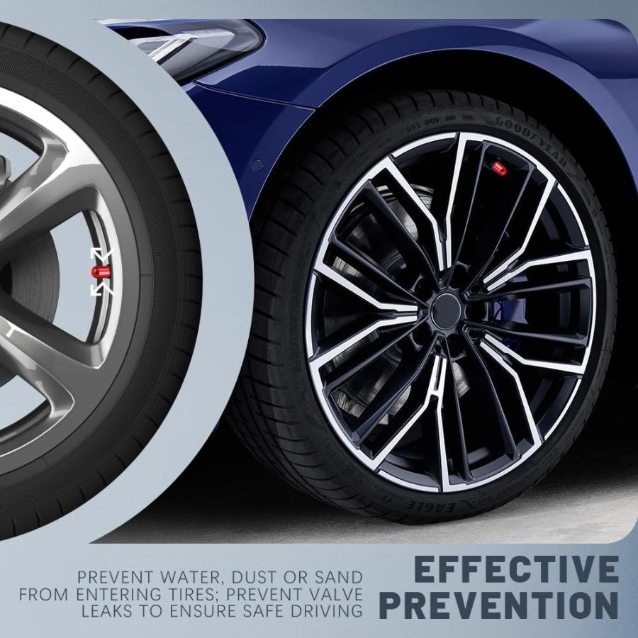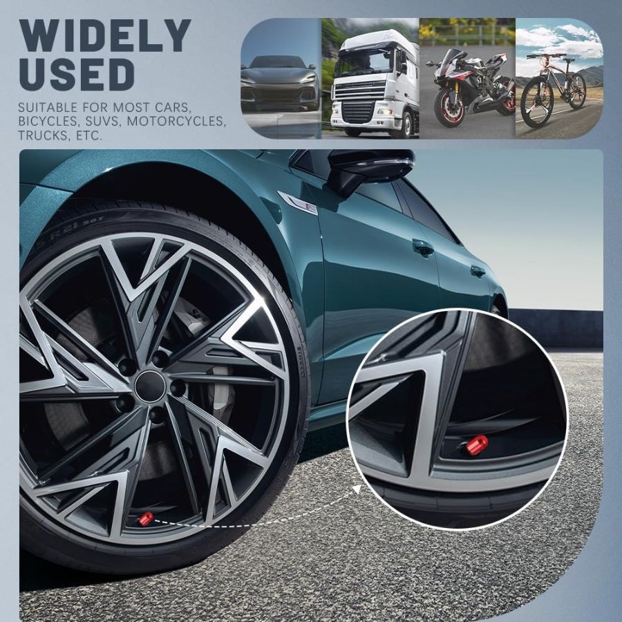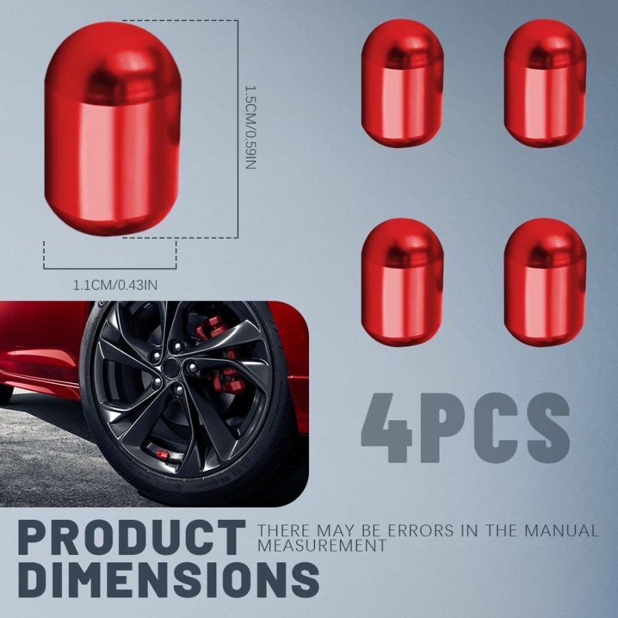 • 4PCS Tire Valve Stem Caps, Air Valve Caps, Aluminum Alloy Wheel Valve Red