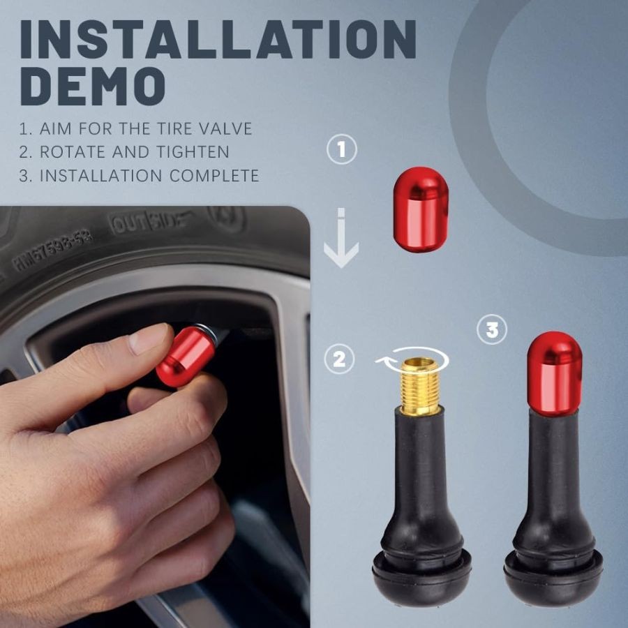 как выглядит 4PCS Tire Valve Stem Caps, Air Valve Caps, Aluminum Alloy Wheel Valve Red фото