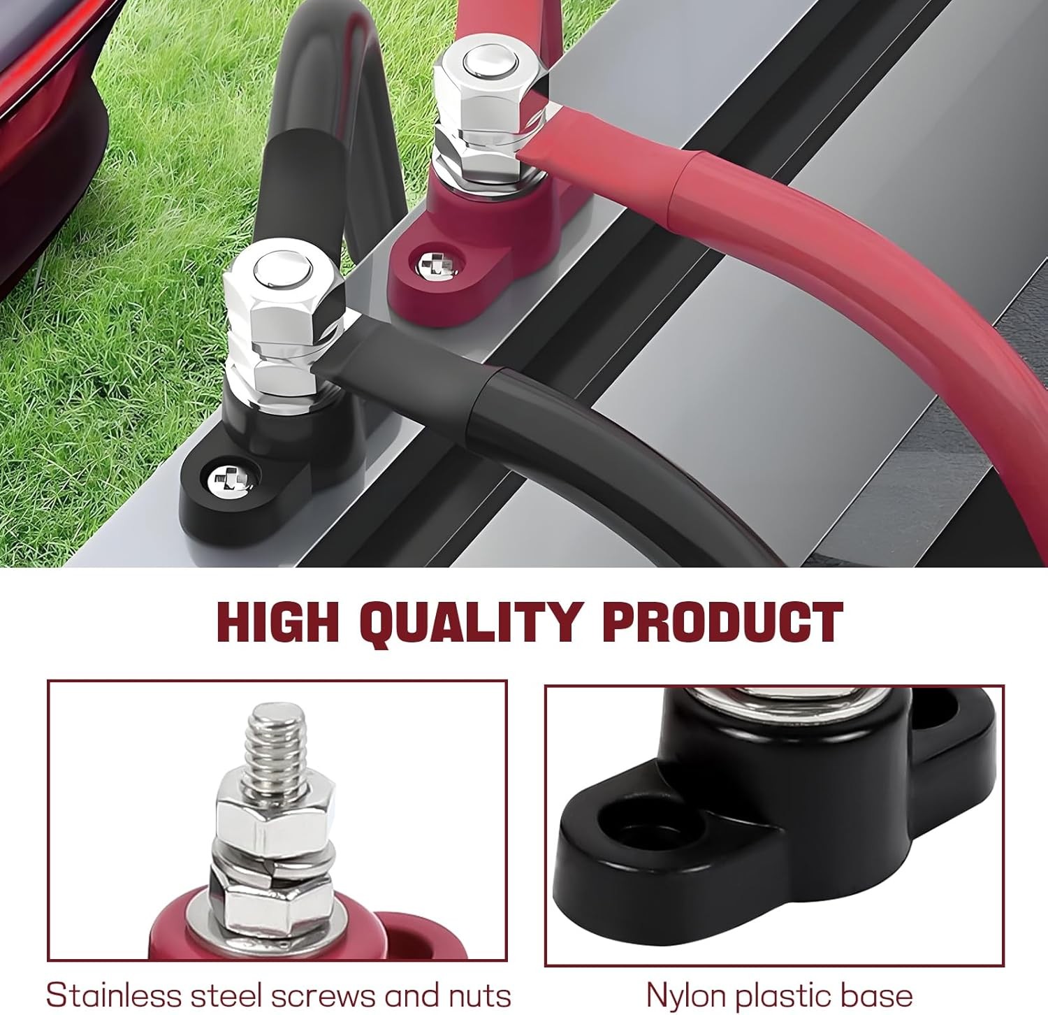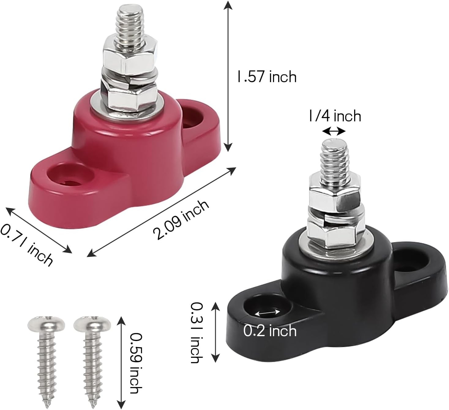 2PCS Single Stud Battery Junction Posts Block, 12V 1/4 Insulated Battery Cable