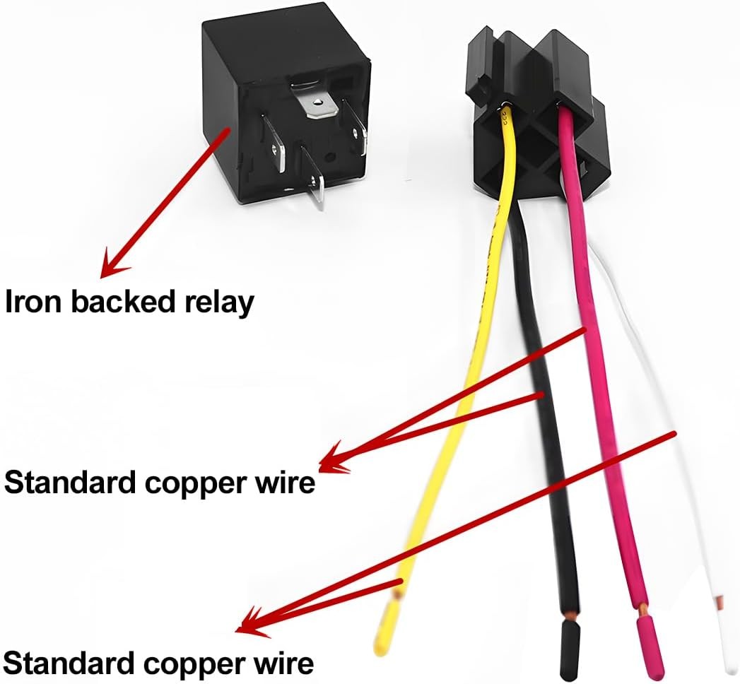 • 4 Pin SPST 12V 40A Car Relay Harness, 2PCS Vehicle Relaying Kit with 12AWG Color