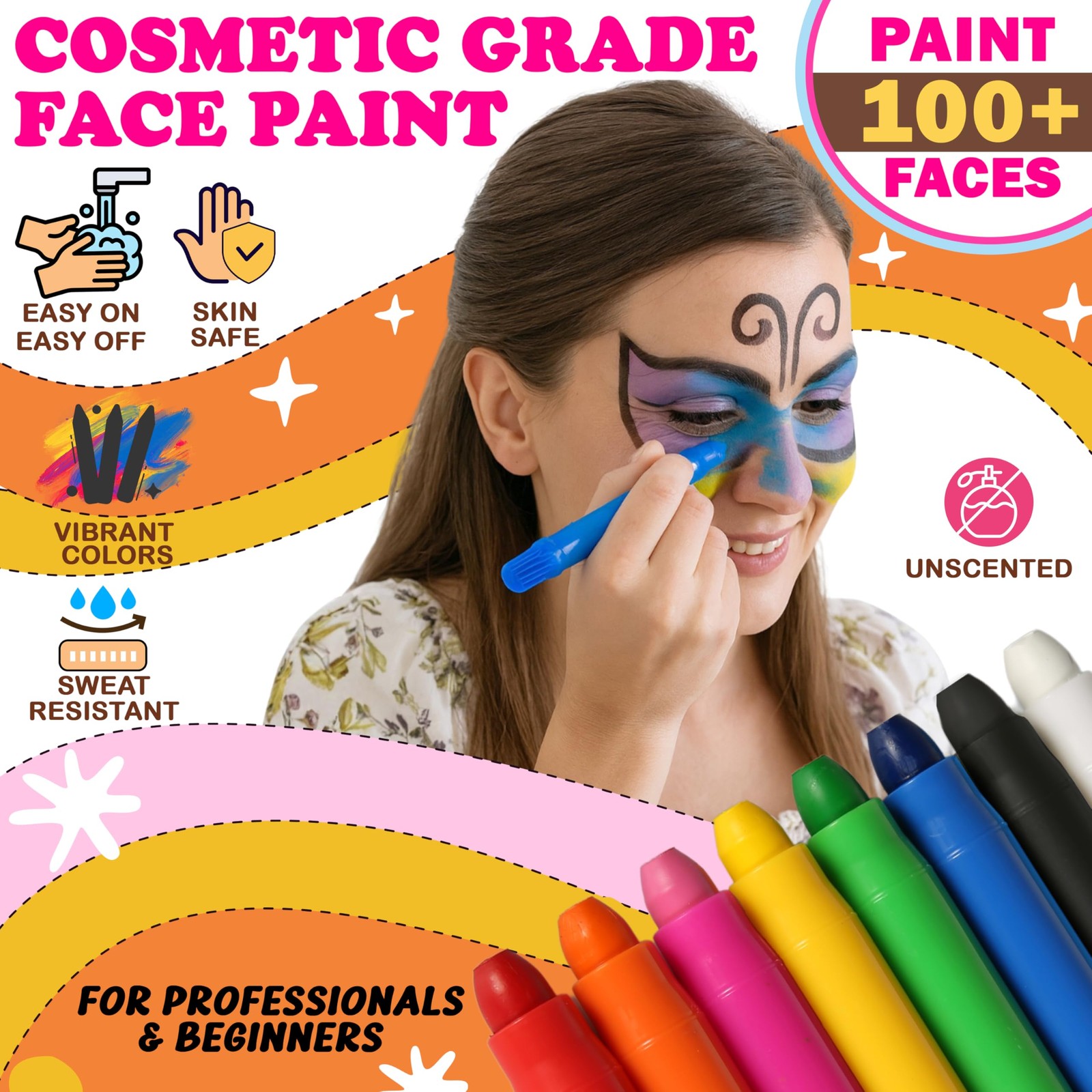 Water Based Paint Kit with Stencils, 8 Large Professional Painting Kit, Washa...
