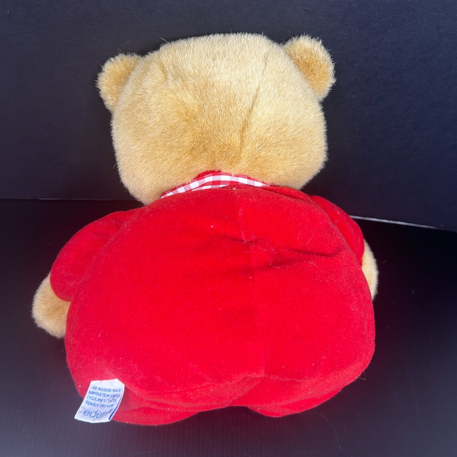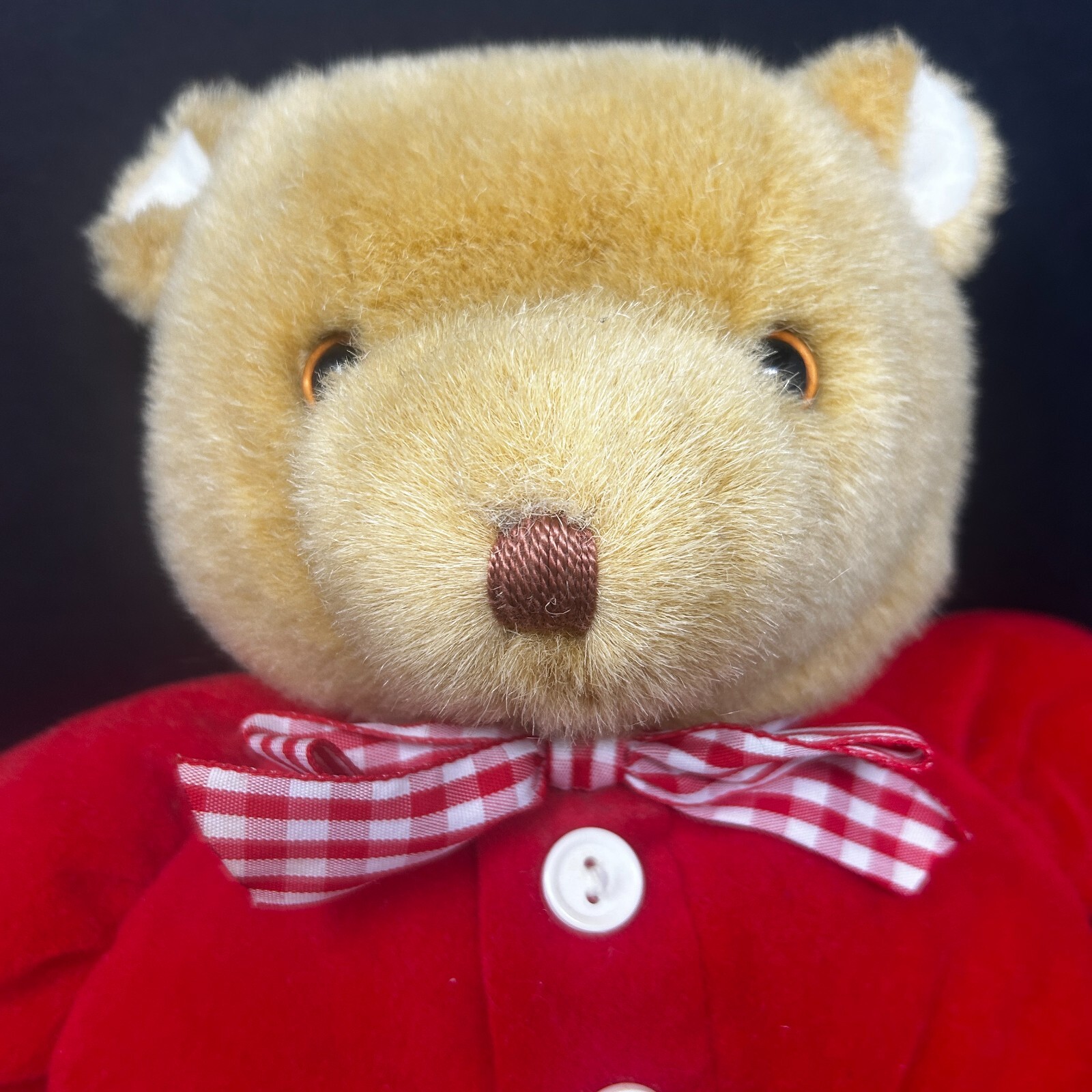 как выглядит Vintage Eden Teddy Bear Plush Red Velour Gingham Bow Buttons 12" Stuffed Animal фото