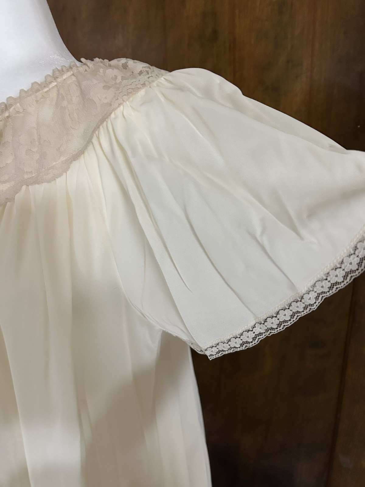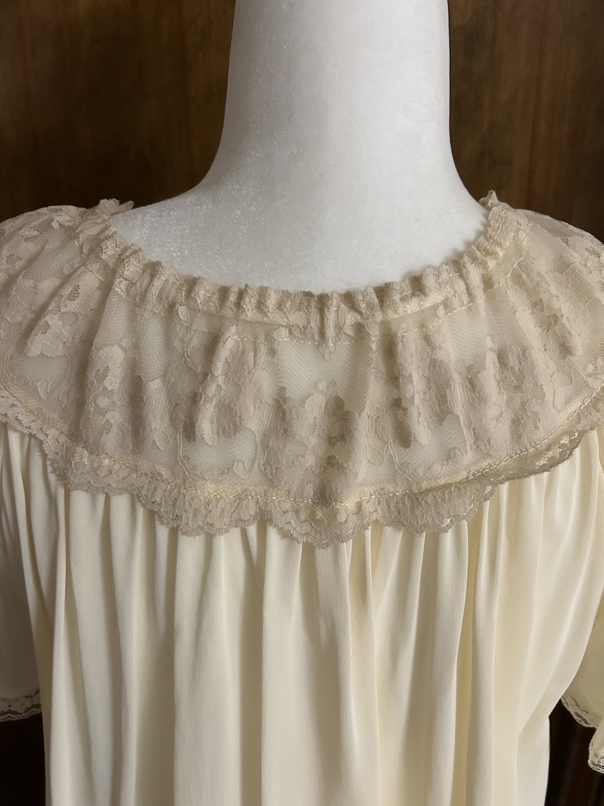 как выглядит VTG Ivory Cream Babydoll Roomy Flowing Nylon Lace Nightgown SZ M CUTE фото