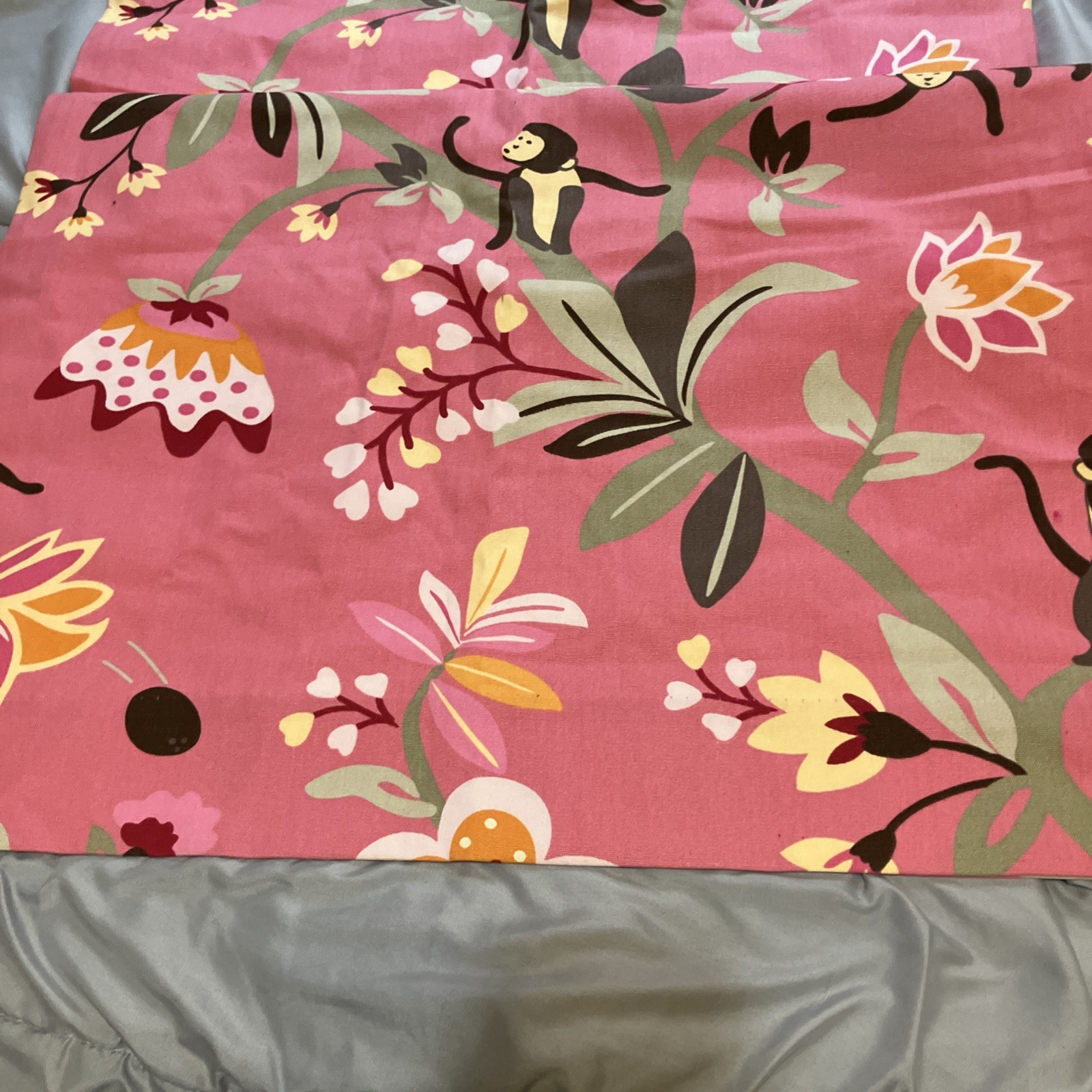 Pottery Barn Nursery Pink Floral Monkey Print Drapes 50 X84 2 50 X63 3