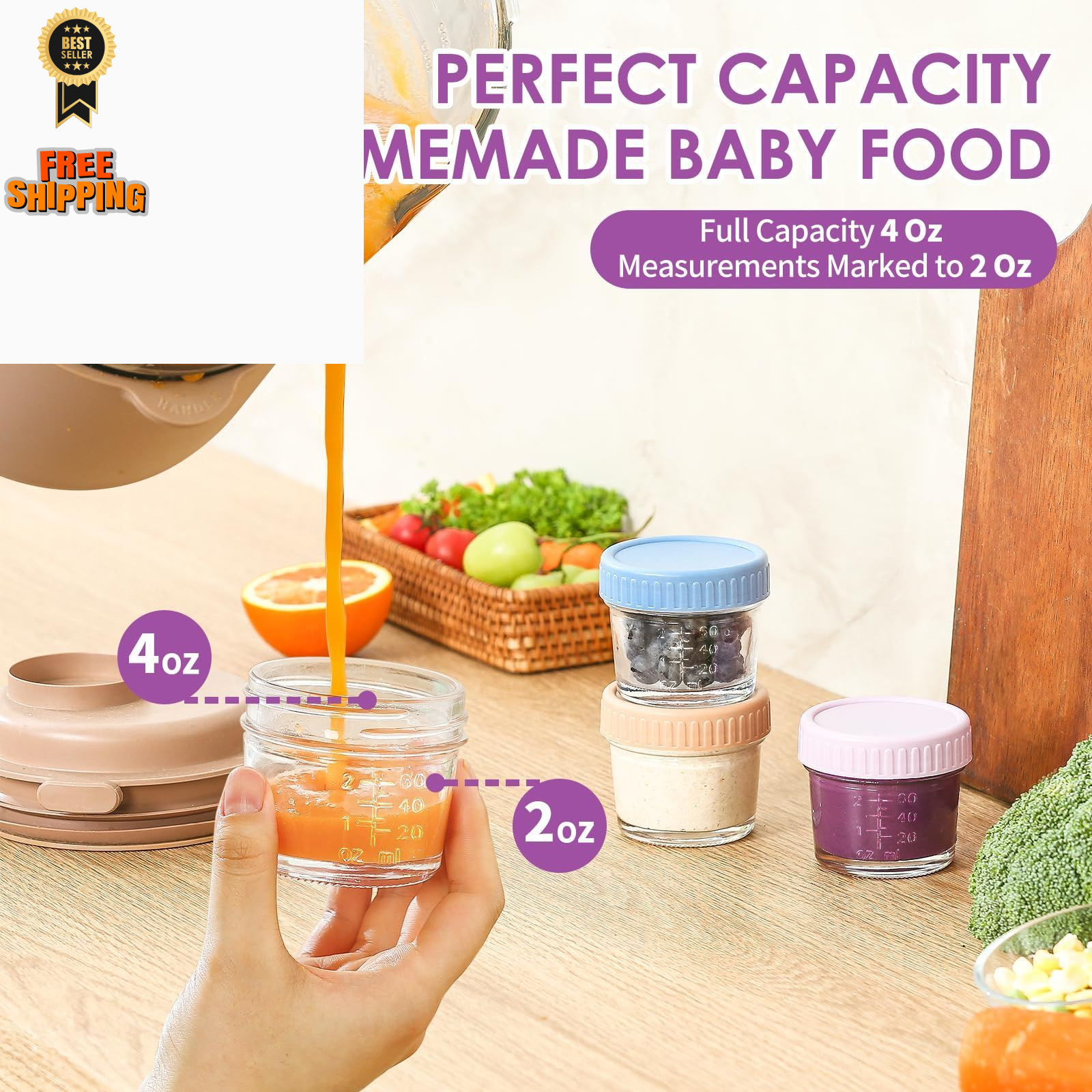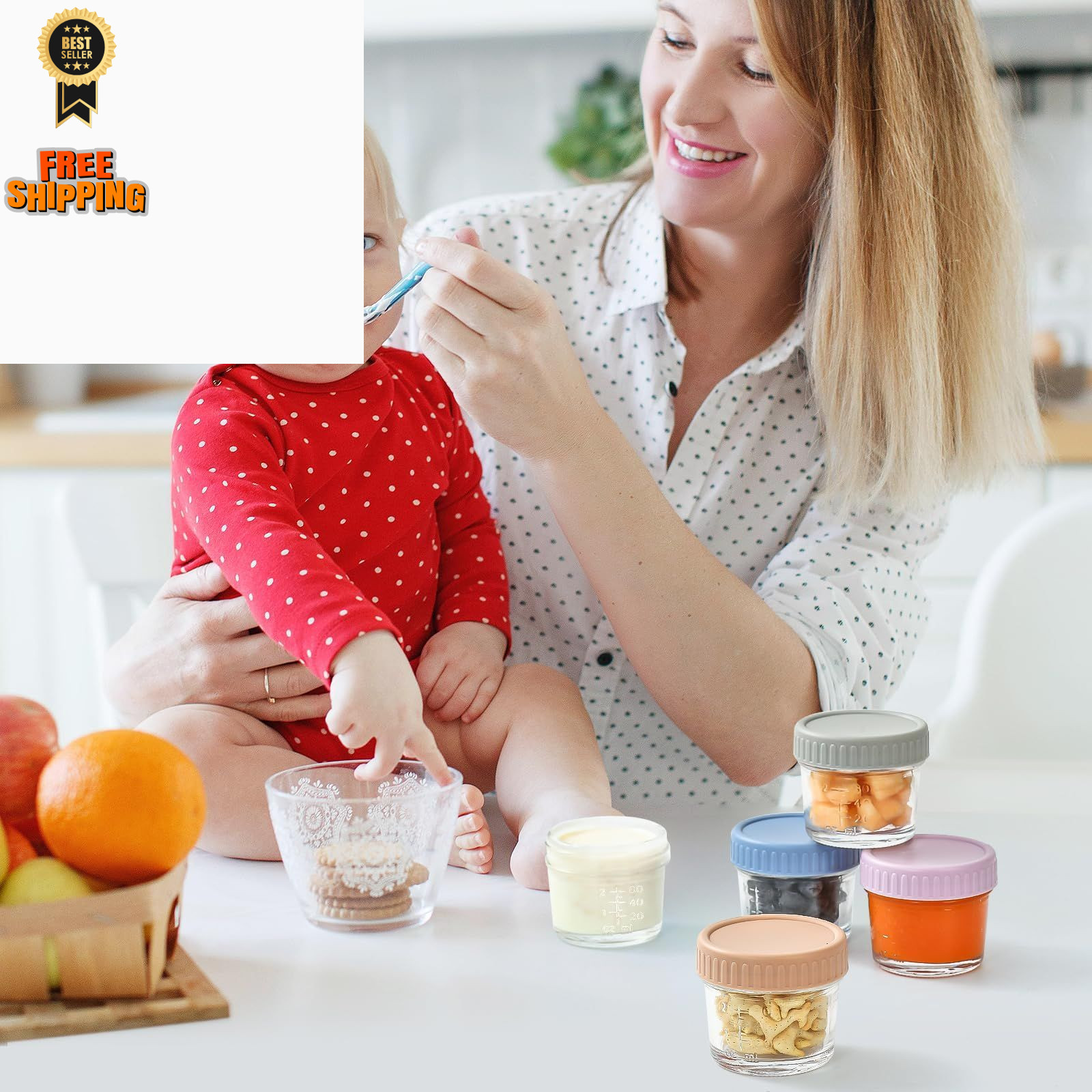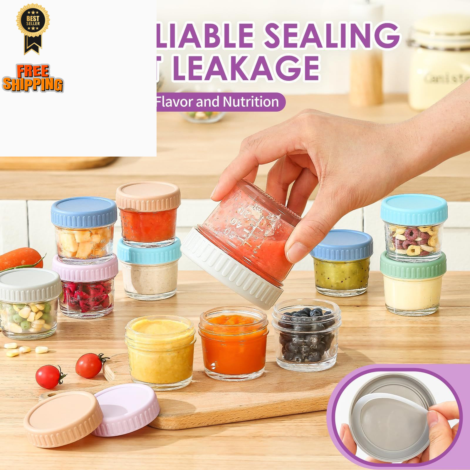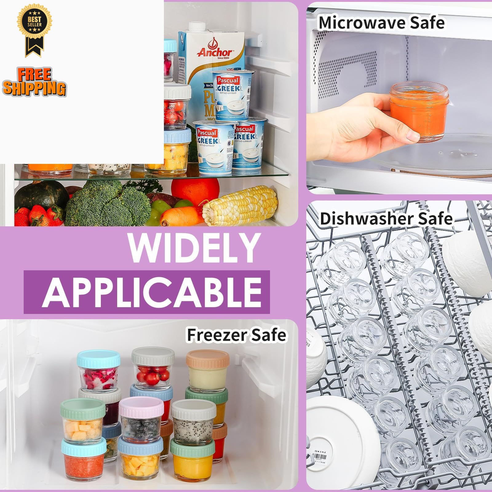 DRKIO 12 Pack Glass Baby Food Storage Containers - 4 Oz 4 - Multicolor