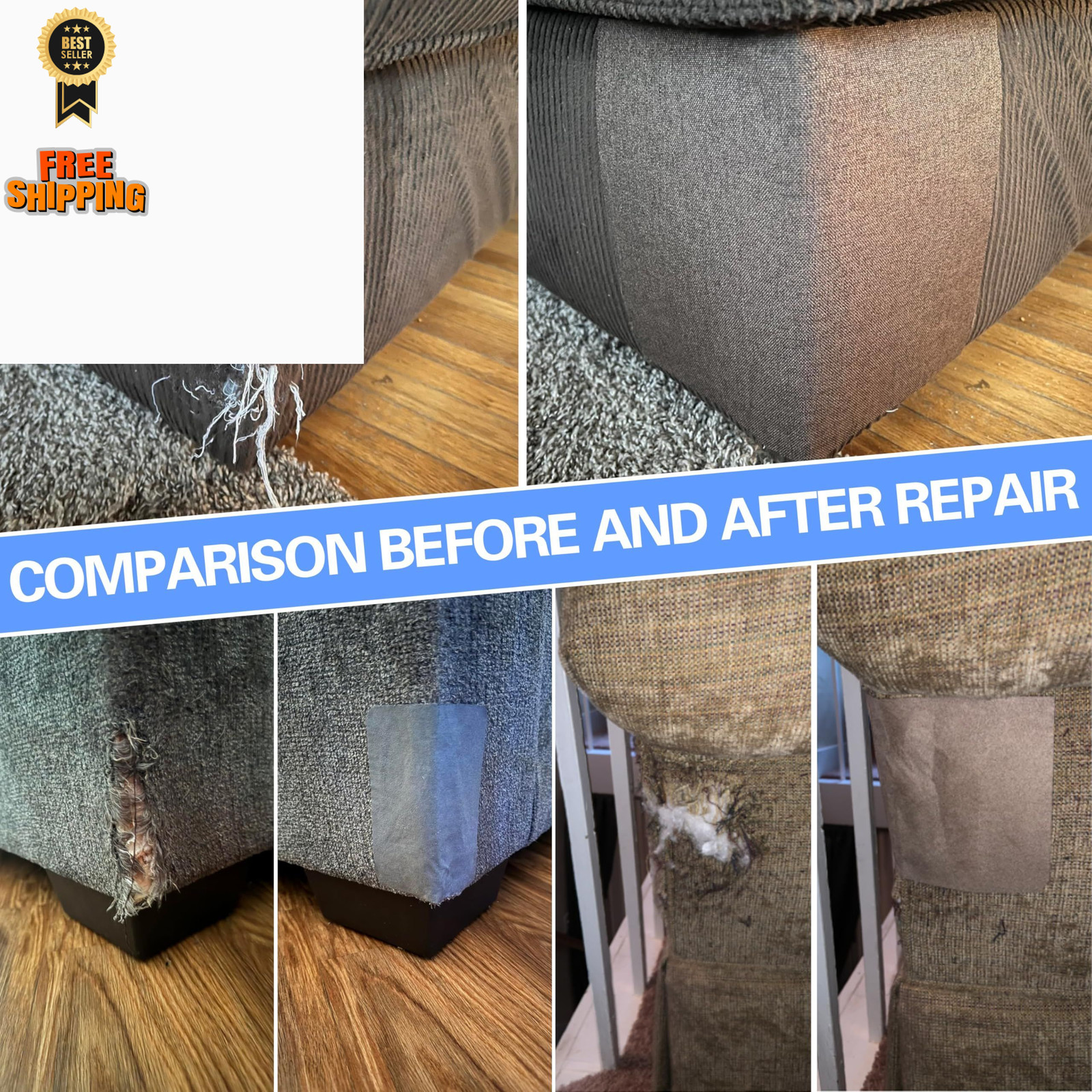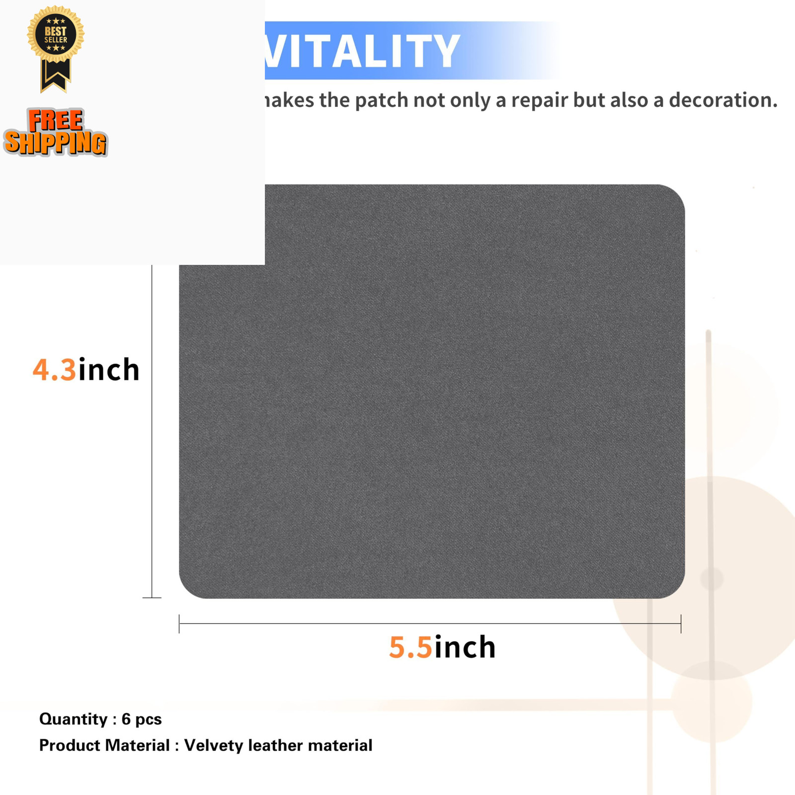 Azobur Sofa Fabric Repair Patch, 6 Piece Microfiber Patches, Velvet, Gray