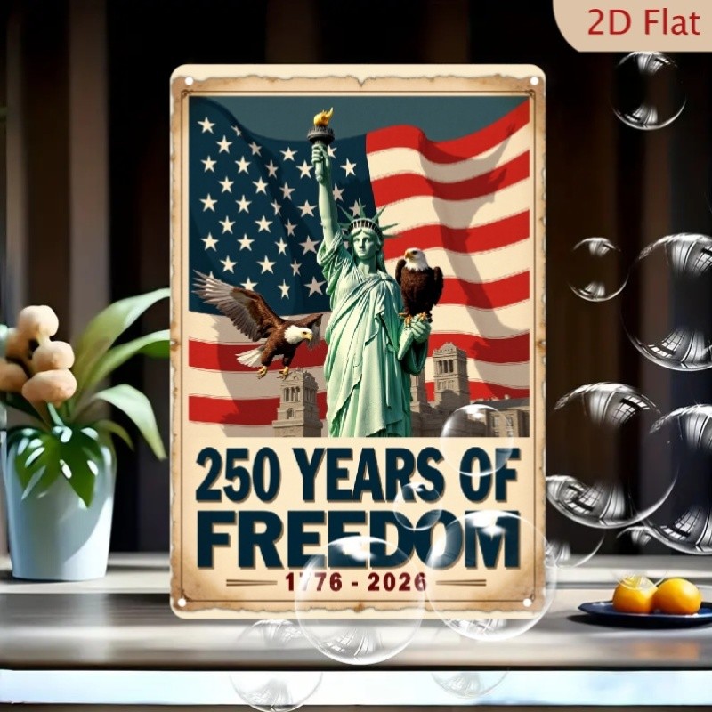 2D 250 Years of Freedom 1776-2026 Metal Wall Sign 250th Anniversary Plaque Decor
