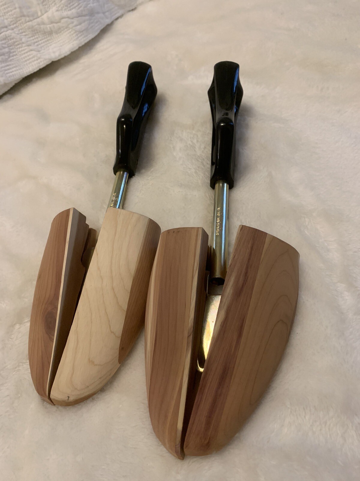VINTAGE CEDAR Wood SHOE HORNS, great condition, adjust smoothly See Pictures