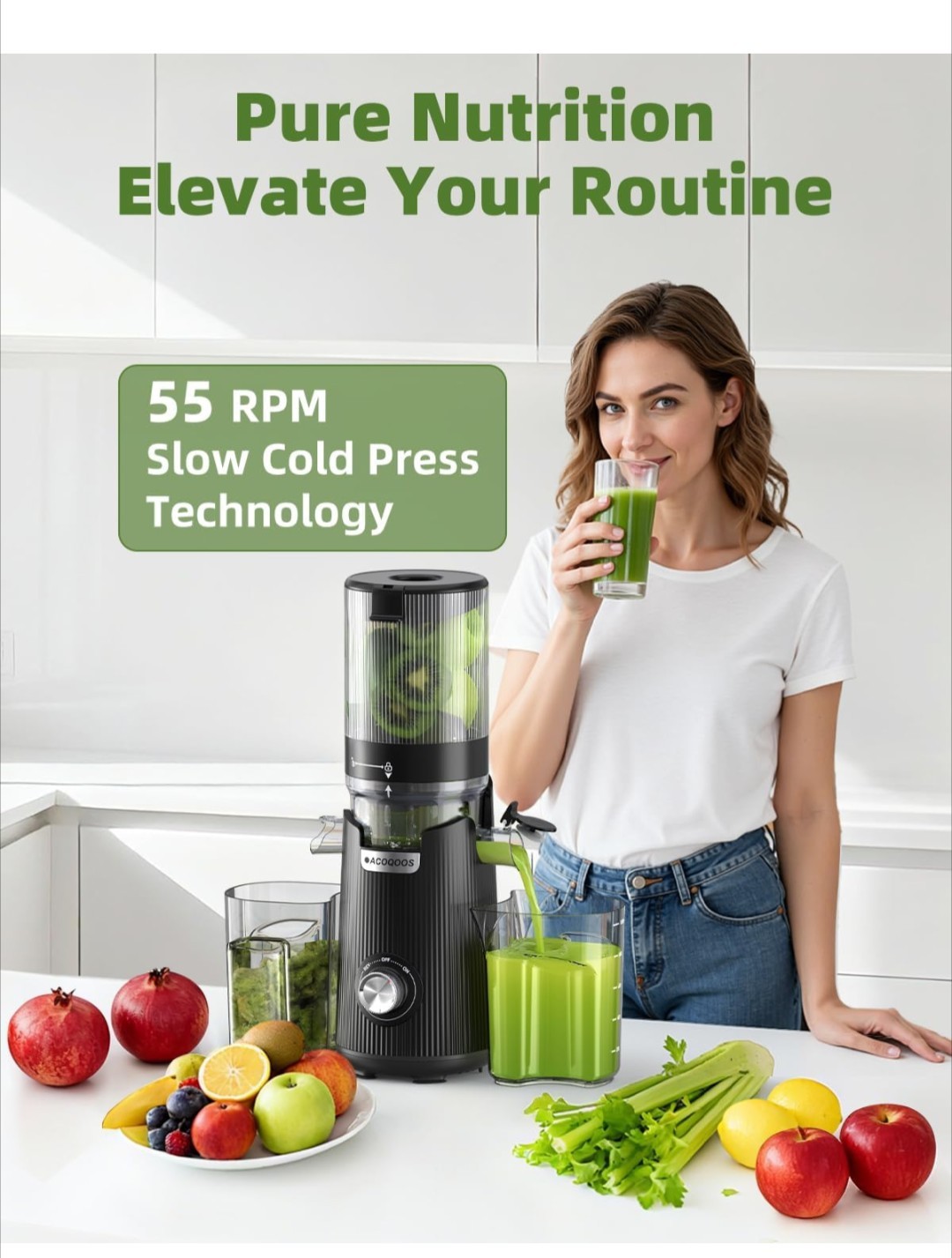 Cold Press Juicer, Auto Feed Pre-cut, 55 RPM Slow Masticating. Read