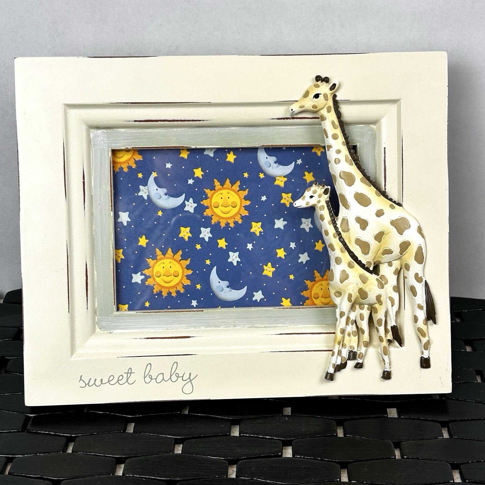 Baby Picture Frame White Distressed Wood Giraffe 4x6 Wendy Bellissimo Kids Room