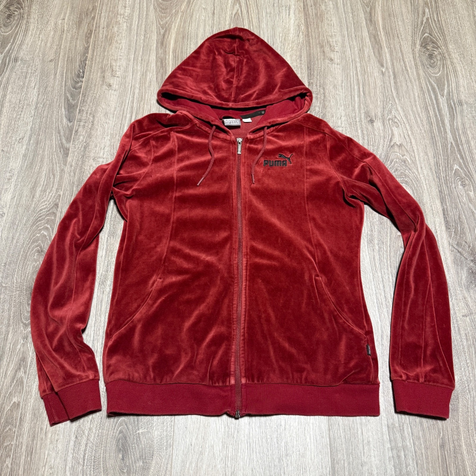 PUMA Women's Full Zip Velour 2 Piece Track Suit Jacket Pants Large Burgundy Gym