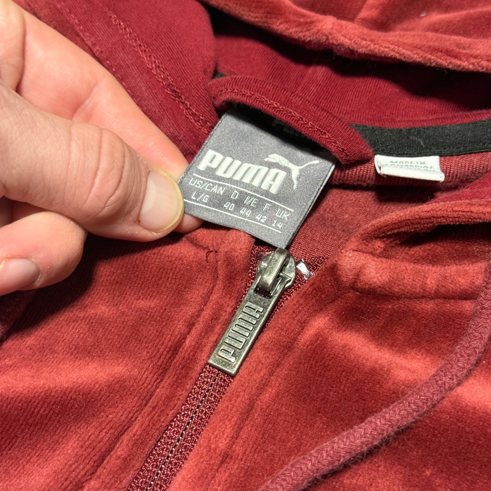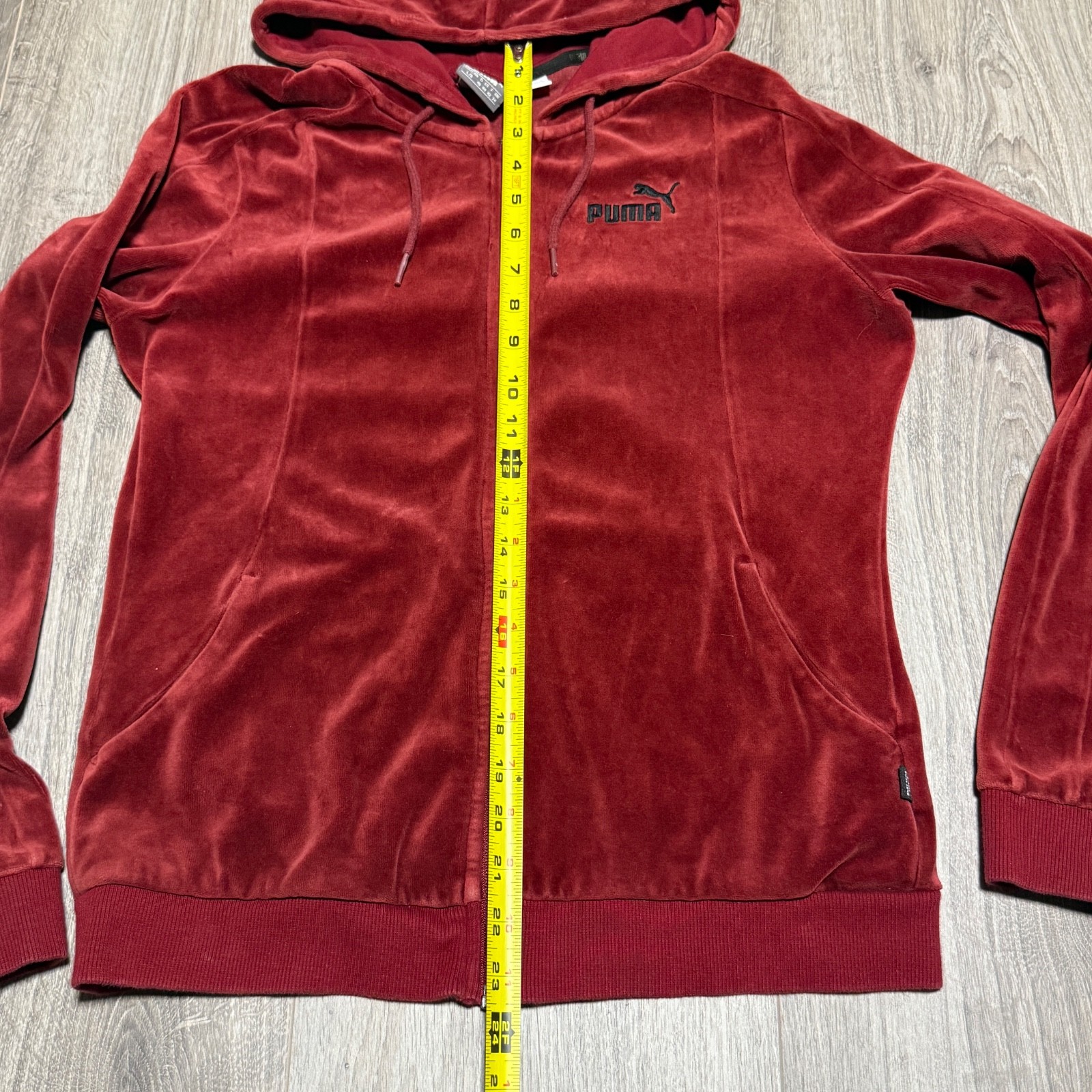 как выглядит PUMA Womens Full Zip Velour 2 Piece Track Suit Jacket Pants Large Burgundy Gym фото