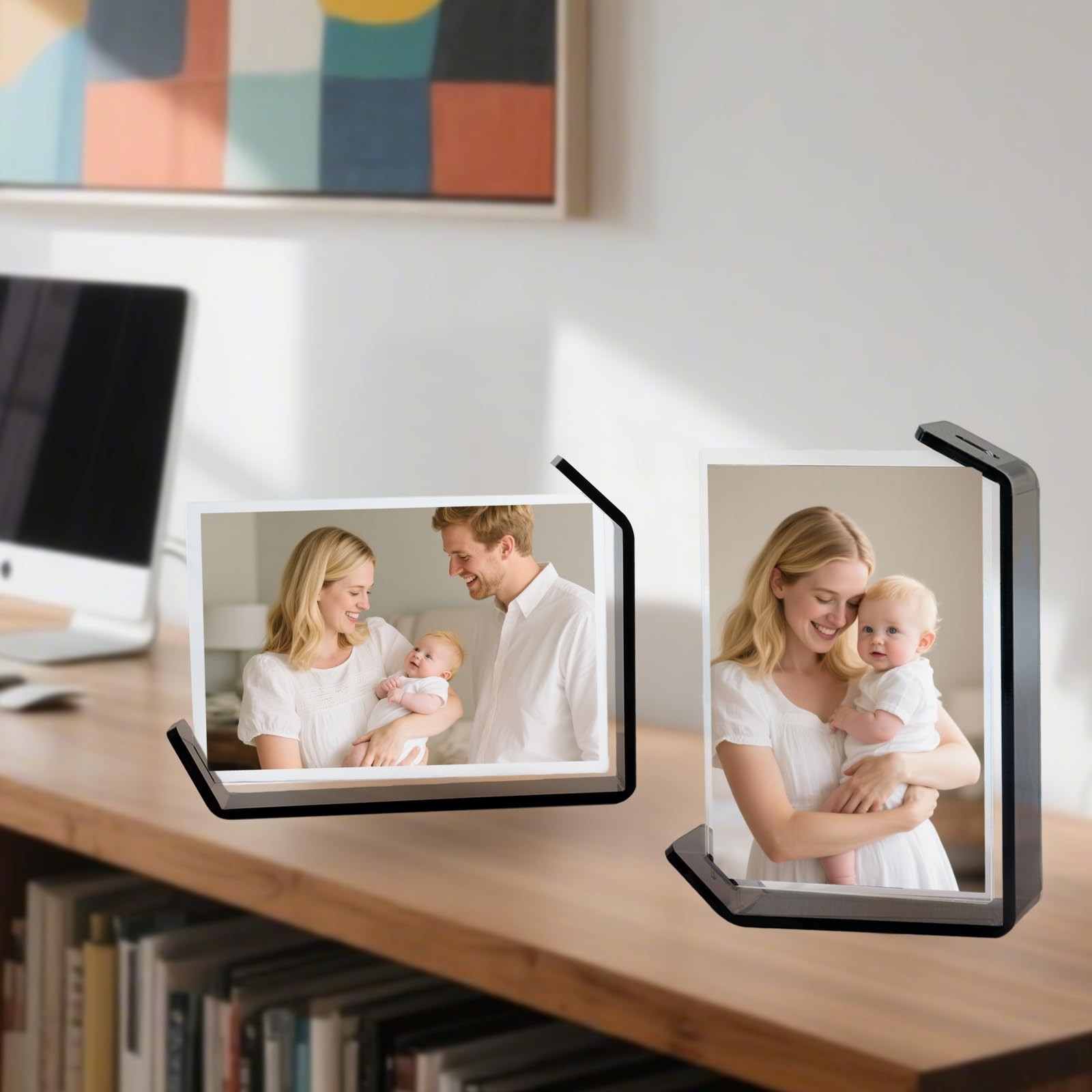 4x6inch 2 Pack Acrylic Picture Frames L Shaped Floating Frame Double Sided Fr...