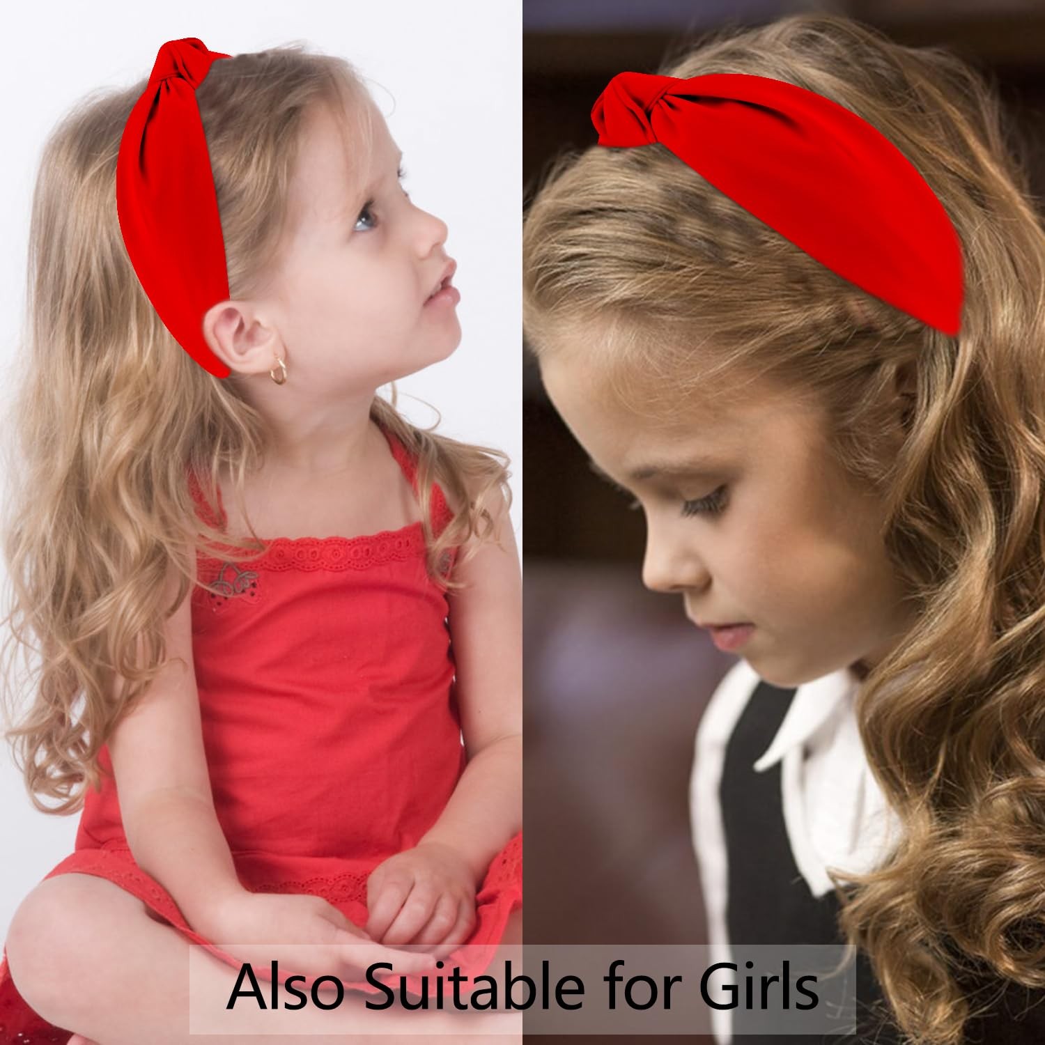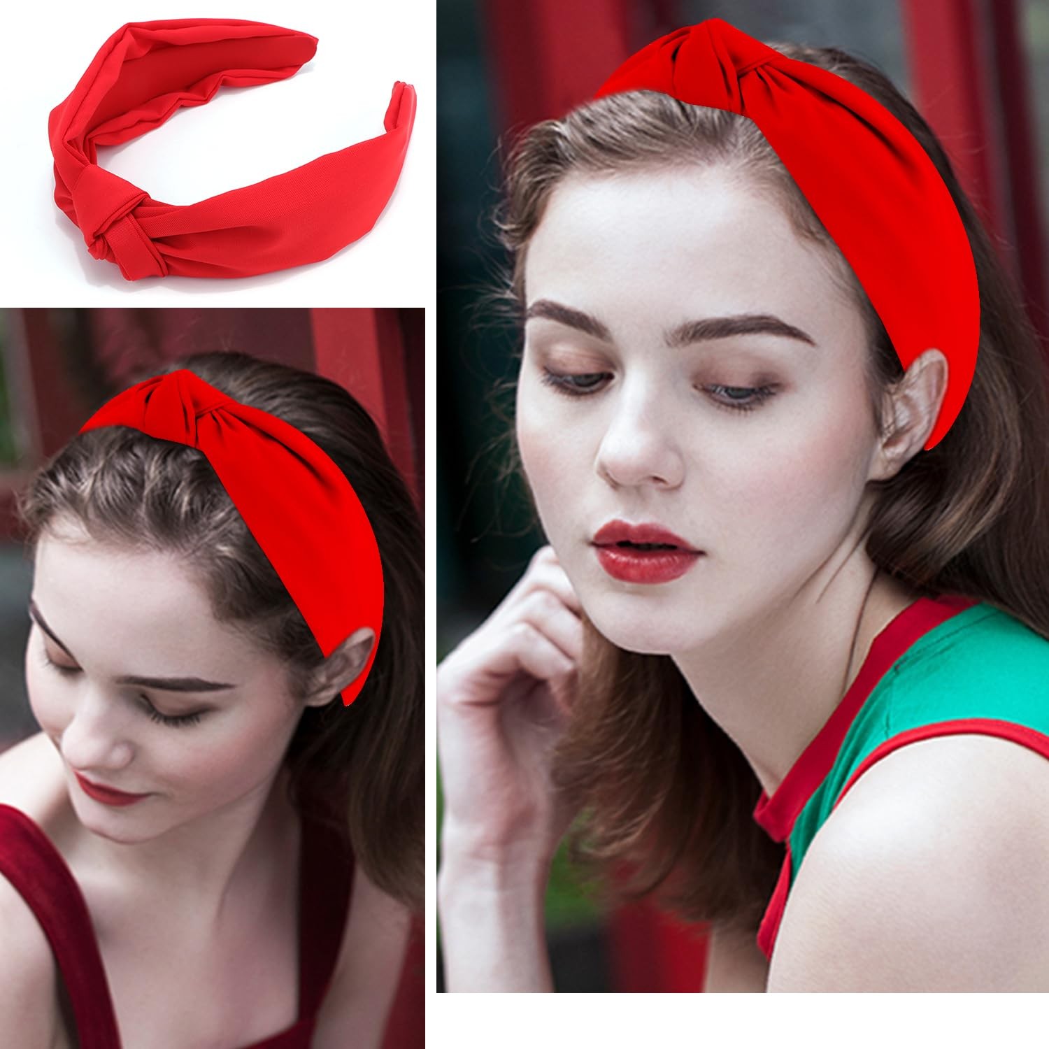 Red Knotted Headband Wide Top Knot Non Slip Plain Solid Color Hair Bands Fashion